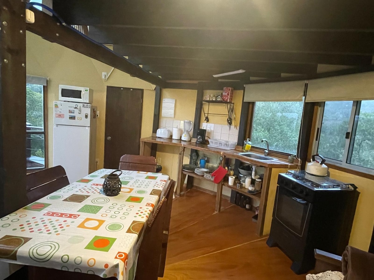 Relaxation is guaranteed in this unique place. Ideal to rest and disconnect. Casa Cuarzo is a house surrounded by forest and built on a quartz hill. Located within the Cerro Místico bio park, in the department of Lavalleja, 12 km from the city of Minas, Uruguay. It has 2 full bathrooms, an integrated kitchen and living room, a bedroom with a double bed and a mezzanine with mattresses.