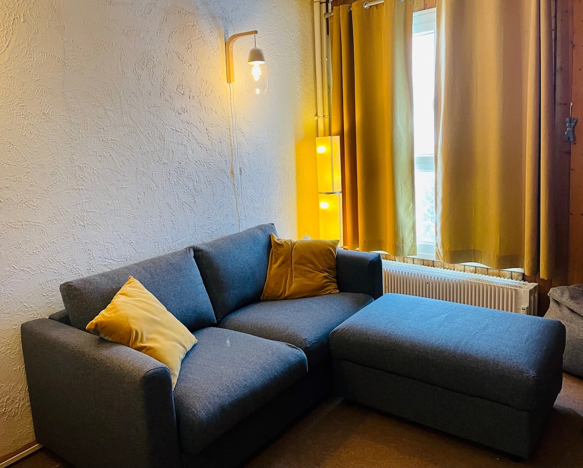 Alone, with family or friends, for 1 night only or a longer stay, Au 17 is an ideal base to enjoy all the activities that the Murat countryside offers. Upper part of an old house renovated as a duplex. Living/dining room and kitchen on the 1st level with TV and pellet stove. Upstairs, cozy bedroom with 3 single beds including 1 in mezzanine and 1 bed 140. Comfortable sofa bed available in the sitting area. Bathroom with bathtub, separate toilet.
