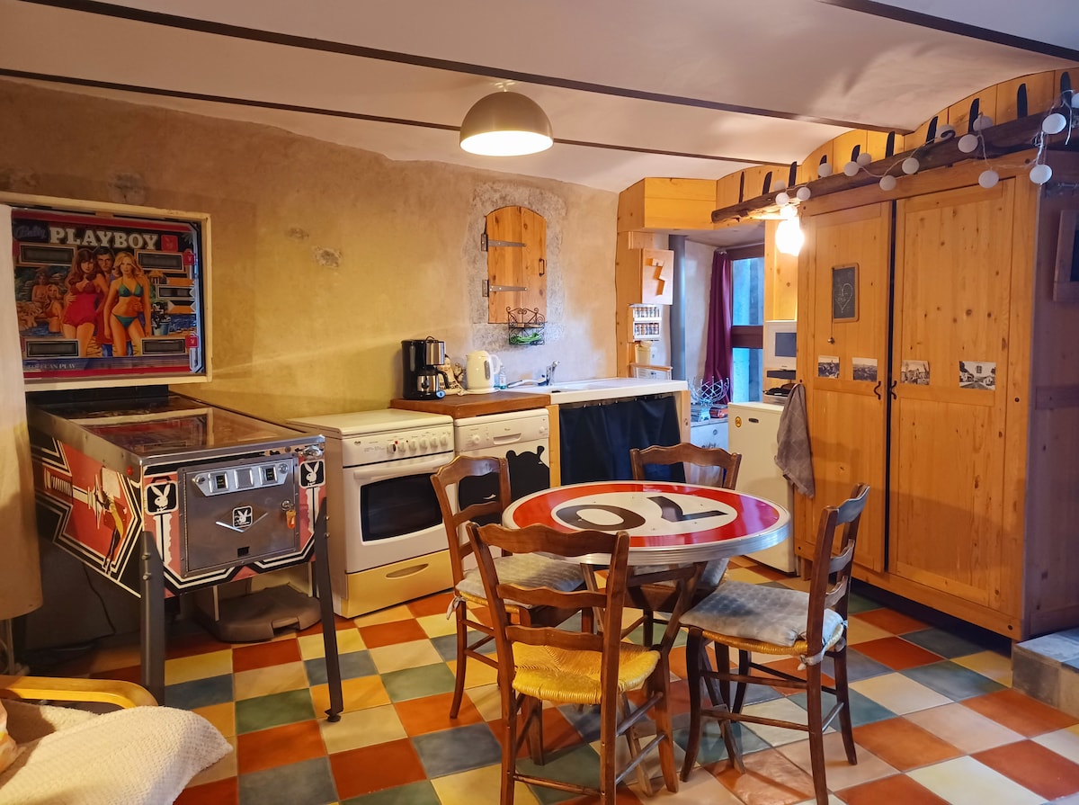 Petit gite cosy au rdc de notre habitation principale, avec entrée indépendante, petit jardin privatif et bassin où nagent paisiblement nos poissons asiatiques. Ce studio de 22m2 se compose d'une baie vitrée donnant accès à la cuisine avec tout le nécessaire, d'une salle d'eau avec wc, douche et lavabo, ainsi que d'un espace chambre/salon . Idéalement situé pour découvrir tous les attraits touristiques de l'Ardèche. Habitants sur place nous aimons accueillir nous-mêmes nos voyageurs.