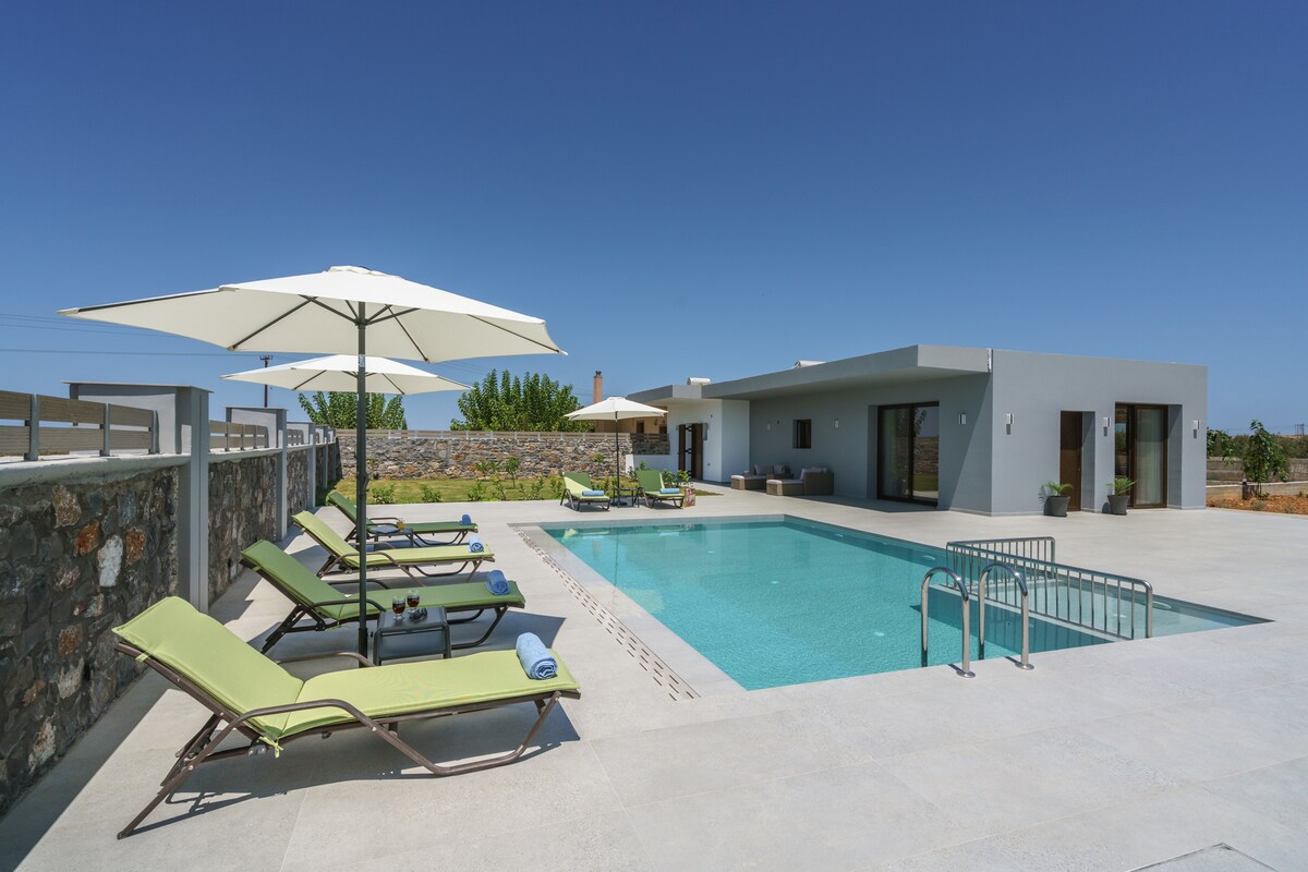 Discover true luxury in our exclusive 5-Villa compound, Panor Villas nestled in the enchanting village of Panormo, Rethymno. Spacious living areas, fully equipped kitchens, and luxurious bedrooms with ensuite bathrooms create the ideal setting for relaxation and rejuvenation. The stunning private pool, surrounded by sun loungers and a shaded outdoor dining area is perfect for refreshing dips, leisurely afternoons, or entertaining guests, the pool area is an idyllic escape.