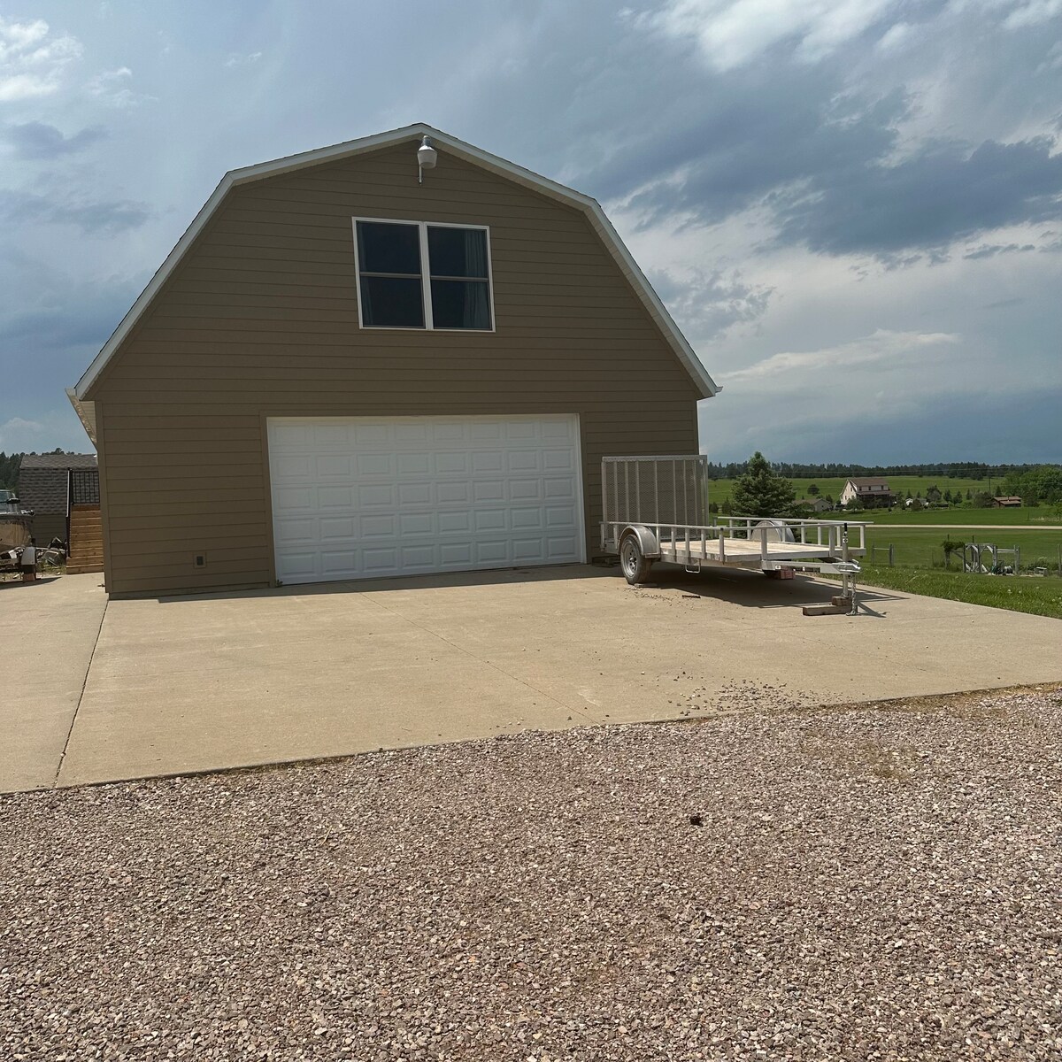 Enjoy the beautiful views in this quiet location while still having quick easy access to downtown Sturgis! Located just 2 miles from downtown, this 1 bedroom, 1 bathroom guest house sits on 8 acres, nestled in the trees. WiFi, large screen TV & enjoy relaxing on the patio by the gas firepit. Central location to many Black Hills attractions! Great views & deer & turkey are regular guests in the yard! Plenty of space for trailers! ** PLEASE NOTE: About 2 miles of well maintained gravel road**