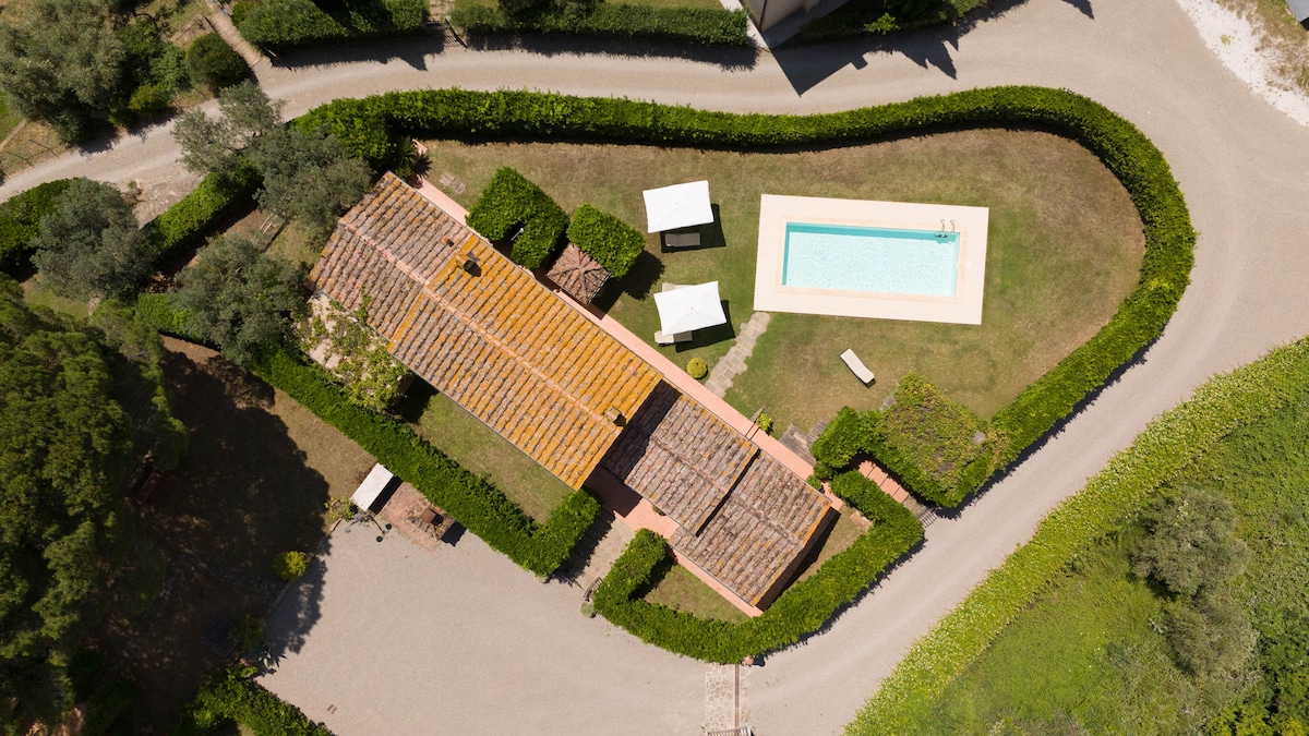 Podere Vergianoni is an ancient and authentic farmhouse dating back to the 17th century located in the beautiful hills of Chianti in Tuscany. The apartment is impeccably furnished in the traditional local style of old Tuscany: ancient wooden beams, terracotta floors, and unique furniture. In the large outdoor courtyard, you'll find a large swimming pool on a panoramic terrace at your disposal, overlooking the valley with breathtaking views of vineyards and olive groves, where you can enjoy spectacular sunsets.
