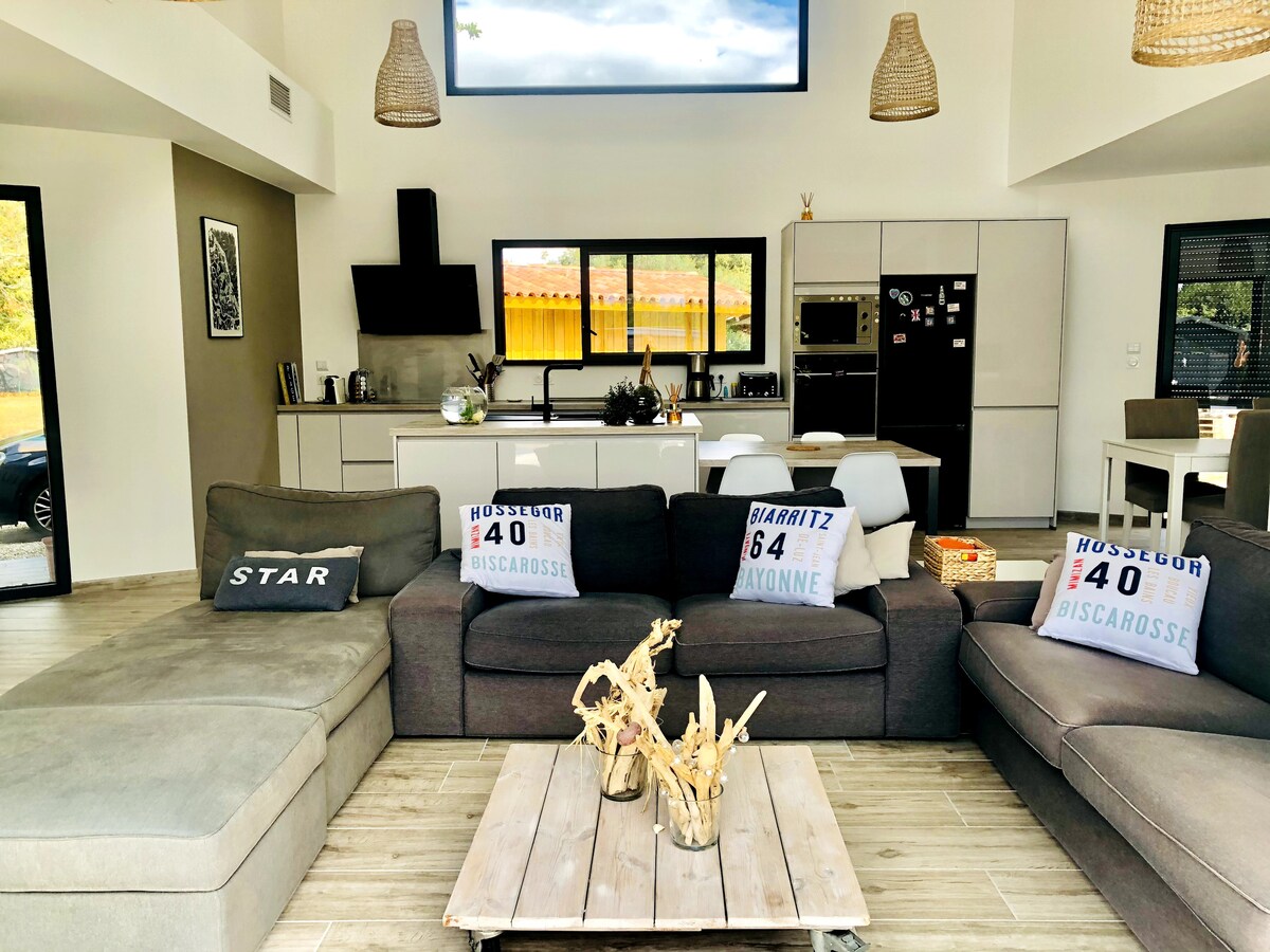 Kick back and relax in this calm, stylish space. Fully independent house composed of: Living room with kitchen, 2 bedrooms with 160 beds, 1 bathroom with toilet. Baby crib available as needed. Guests can enjoy a pretty terrace with dining area and barbecue, without any overlooking. We are ideally located, between Bordeaux, Arcachon Bay and Biscarosse, about 30 minutes from each of these cities Easy access to shops but you need a vehicle. Quick access to the A63.