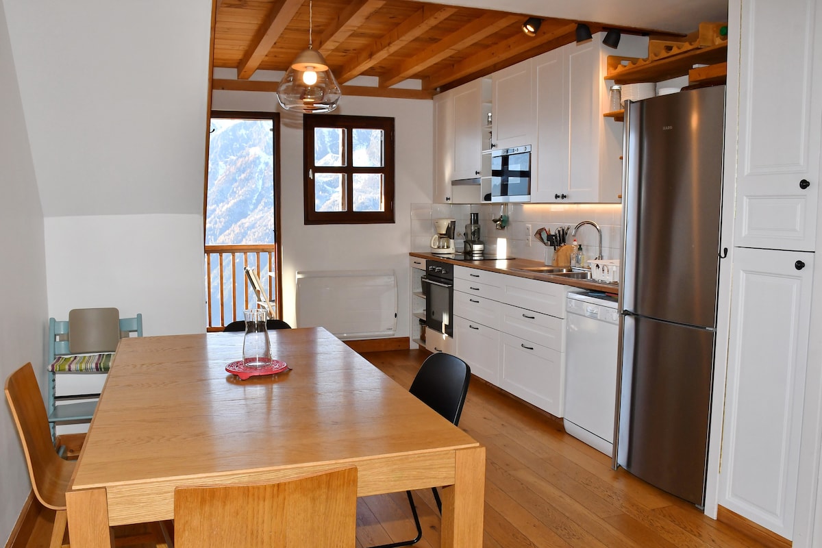 Cosy 4-person apartment with balcony and exceptional view - Huez Welcome to our recently renovated apartment, located in the heart of the charming village of Huez. Ideal for a summer or winter stay in the mountains, this cocoon blends modernity and chalet spirit. Enjoy breathtaking views of the mountains and Sarenne gorges from its large bay windows, balcony or terrace. Located 3 km from the Alpe d'Huez ski resort (6th bend), and 250 m from the free Alpe express gondola.