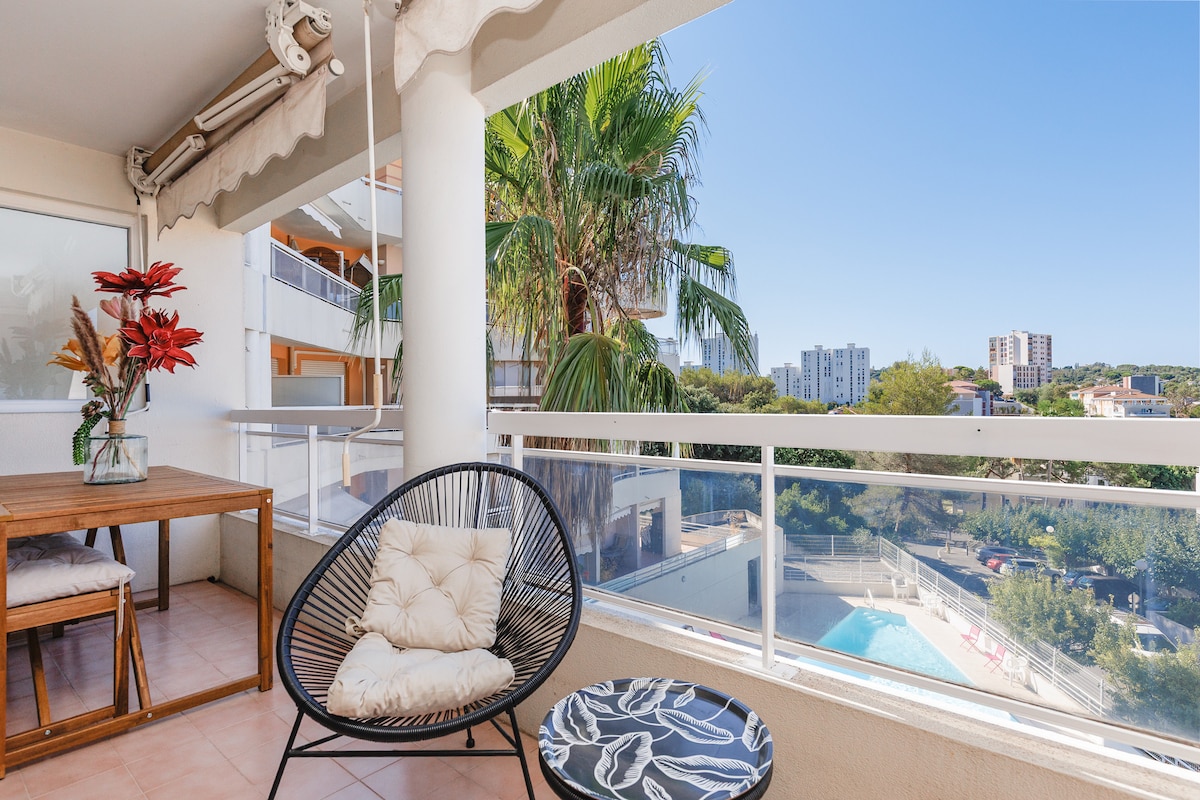 T2 Cannes à 10 min • Piscine • Grand balcon