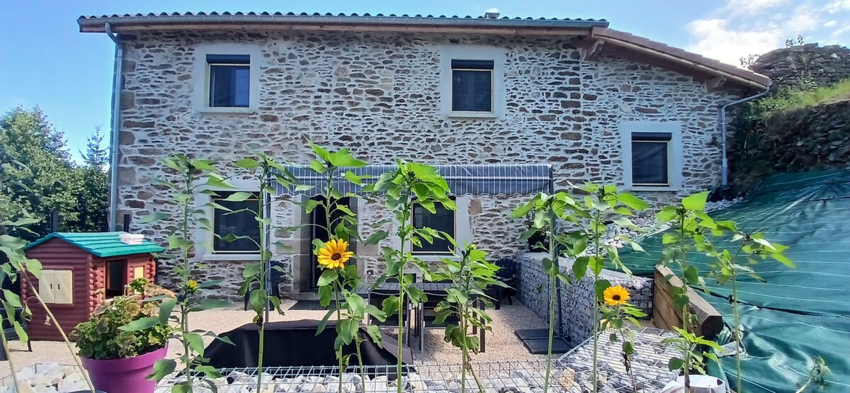 Suite in an old farmhouse Ideal professional stay or relaxation in the countryside. 2 adults (additional adult bed optional) + 1 baby (cot provided) Equipped kitchen: oven, induction hob, microwave, fridge (coffee tea, syrup...). Private parking. Wifi fiber internet In options: -Drinks -Breakfast. -Organization of mountain biking Nearby activities: (Golf, hiking, horse riding, water sports and mountain biking, near the banks of the Loire). Downtown ROCHE 5min - ST ETIENNE 10min - LYON 50min