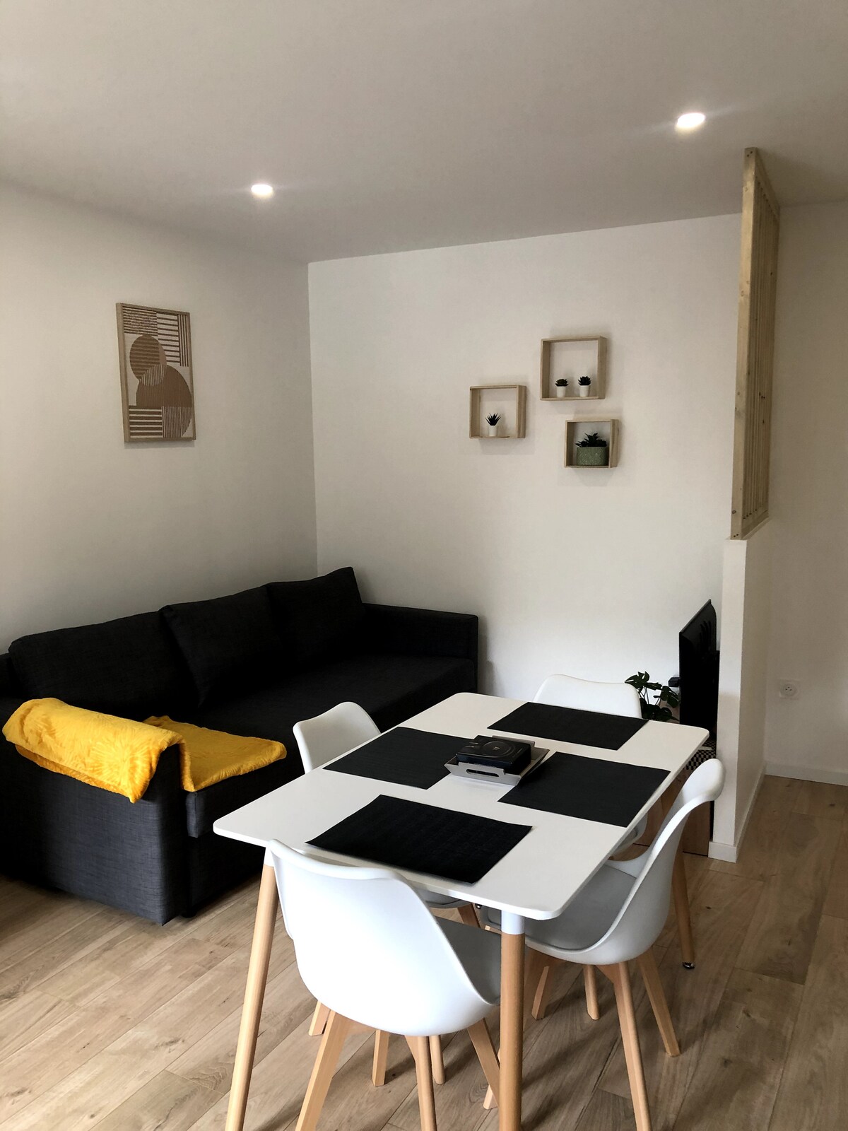 Relax in this elegant 27 m² townhouse in the heart of Roche-la-Molière. Enjoy the calm of the village while being only 10 minutes from downtown Saint-Étienne. You will find local shops within a 2-minute walk, as well as public transport. Ideal for short stays or workers on the go, this cozy studio offers all the comforts you need. Bed linen, towels and essential amenities are provided for a comfortable stay.