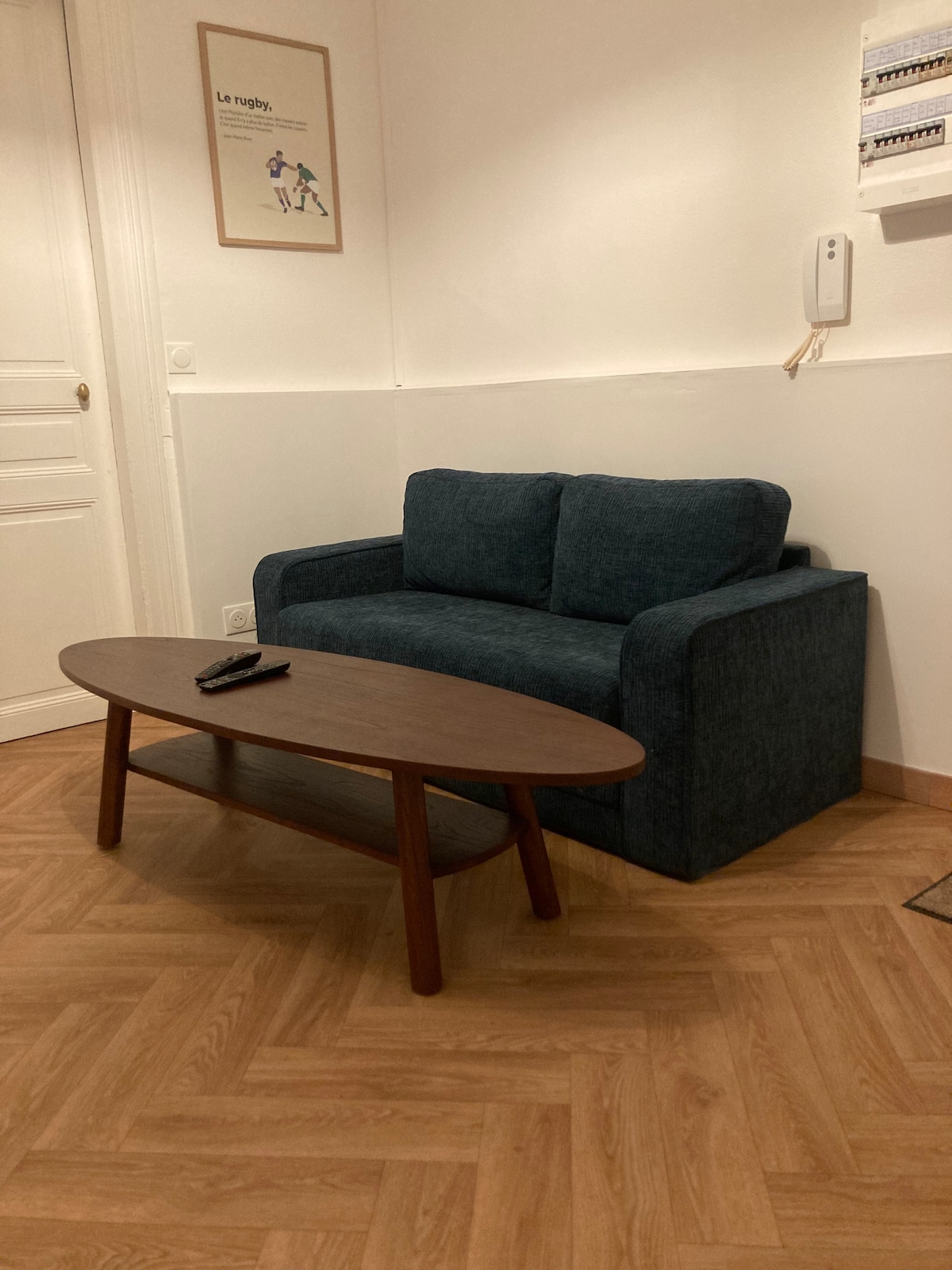 Renovated F1 apartment, located in the city center and 10 minutes from the airport. On the 2nd floor of an old house, this high-ceilinged accommodation overlooks the cathedral. It is quiet and bright. New and cozy bedding has been installed for your best comfort. Thorough cleaning is carried out after each stay and contact surfaces are disinfected.