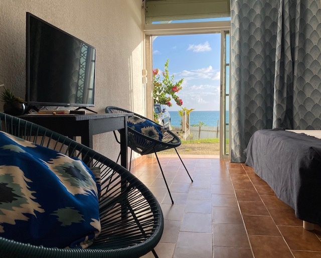 Passing through Guadeloupe for tourism or work, you will be ideally located, 2 steps from the beach and all amenities. This 41 m² studio with sea view is air-conditioned and equipped with a king size bed and a futon sofa bed. The kitchen is fully equipped and the living room area will allow you to relax quietly in front of the TV. The quiet and secure residence is located within the Auberge de la Veille Tour, and you have access to the private beach.