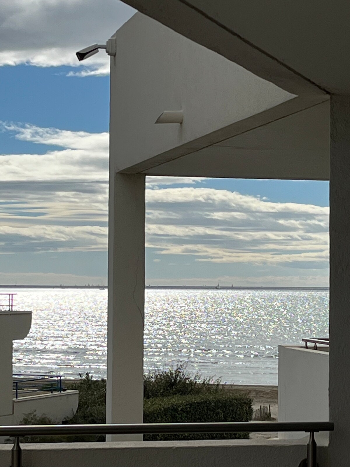 In the heart of La Grande Motte, Spacious T2 with large terrace and beautiful sea view. Family accommodation, it has one bedroom and a sofa bed in the main room. Equipped kitchen. This special place is close to everything, making it easy to plan your visit. Free outdoor parking from November to March 31, paid in high season, free parking all year round at the entrance to the city