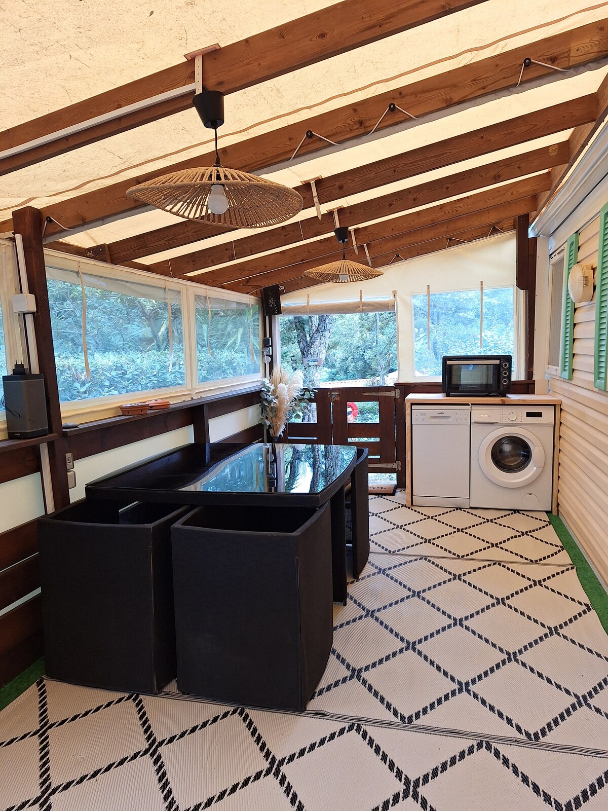 Prenez une pause dans ce bungalow moderne de 34m2 au cœur de la verdure. Baigné de nature, vous apprécierez le calme de la campagne sur sa grande terrasse de 25m2 ombragée. Jardín privé et clôturé de 115m2 agrémenté de plantes et arbres fruitiers. Idéal pour un séjour en amoureux au grand air. Proche du village provençal d'Ollioules et de nombreuses plages magnifiques à 15/20 minutes en voiture.