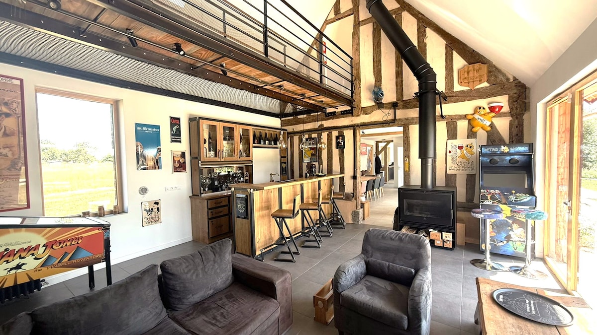 1 hr 20 min from Paris. Total change of scenery for this fully renovated farmhouse, quiet and not overlooked · 18,000 m2 garden… playground swing 🏓 · 🏊♂️ 15x5 m pool heated from 04/01 to 10/15. · Tennis court… rackets and 🎾 · Pétanque area… balls · Kamado XXL BBQ · Pool table 🎱 · Foosball · Karaoke 🎤 (🤪) · 215 cm orange Netflix TV screen · Fiber WIFI · Fireplace, wood provided · Eat-in kitchen 5 Bedroom 4 shower rooms 1 bath 5 powder rooms What else!