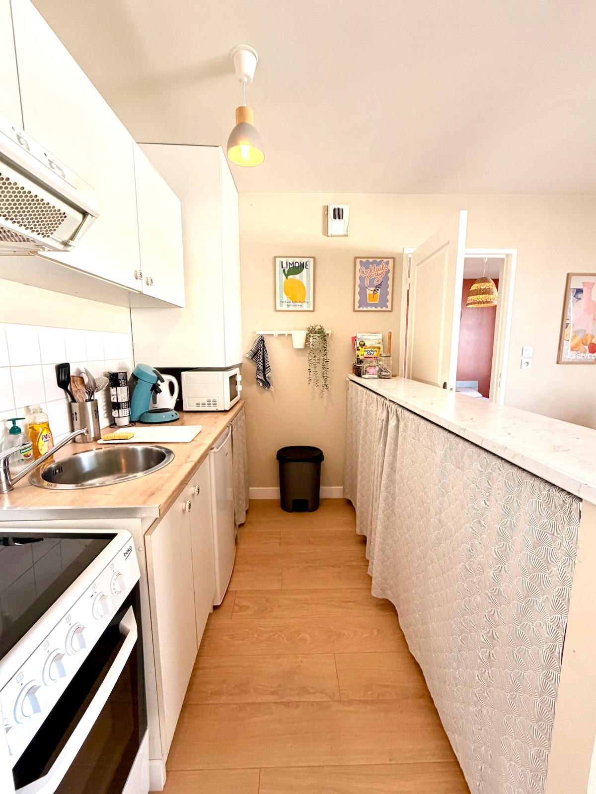 We welcome you with pleasure in a 2-room apartment, recently renovated with passion, within 15th century walls. The accommodation includes a corridor leading to a bedroom with a 160 x 190 bed and walk-in shower on one side, and a large living room with kitchen open to the dining/living room. The place is great for a couple, but a single bed & sofa bed in the main room allow for extra beds. If you have specific questions, feel free to reach out to us!