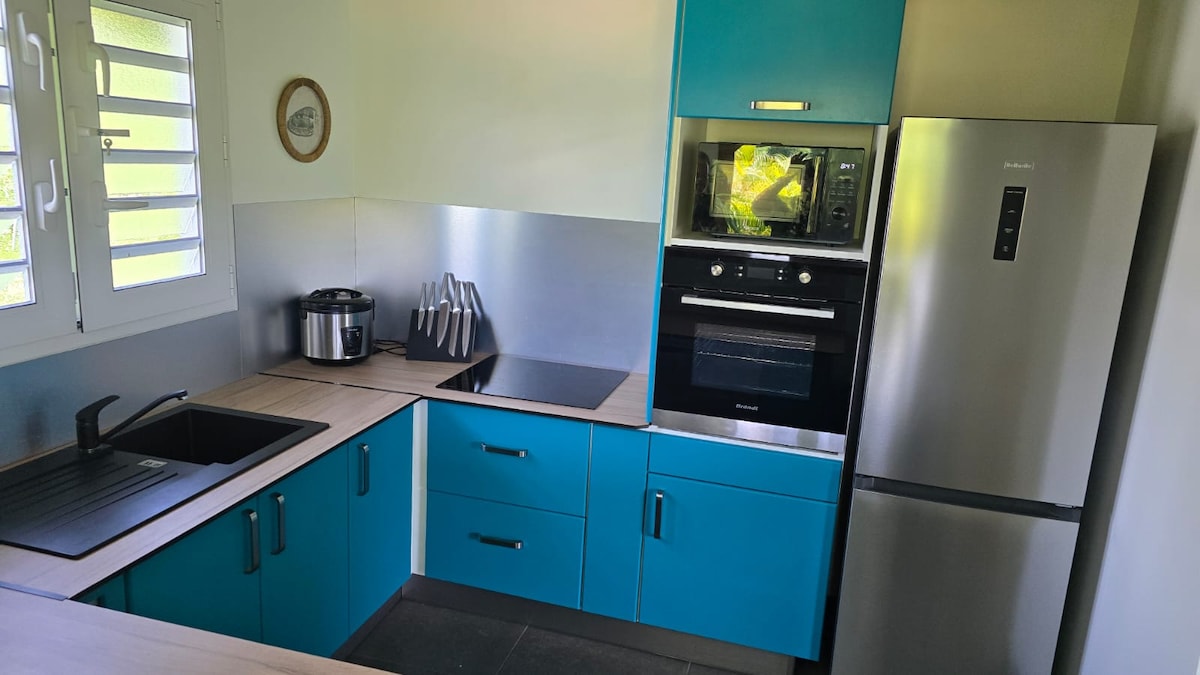 This stylish and fully equipped new accommodation with kitchen is perfect for a couple's stay. Ideally located for a visit to the north of Martinique, its idyllic natural setting will seduce you. As with all trips to Martinique, a car is required. Located in the countryside, you will be awakened by the song of birds (and especially roosters). Your host will be able to give you good recommendations. Note the presence of 2 adorable dogs Buu and Baguerra, 3 cats.