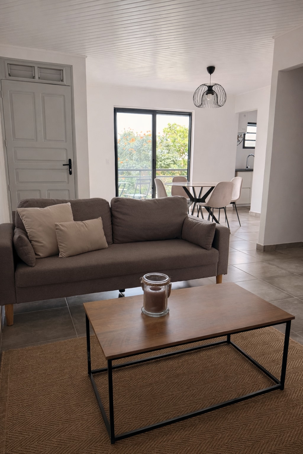 AkaÉva, an ideal choice for a successful stay in Martinique. This charming accommodation nestled on a ventilated hill offers panoramic views of the sea and forest. Perfect for a stay with family or friends, it has a spacious, comfortable and well-equipped living space. Just minutes from the beaches, hiking trails, shops and marina, this is the perfect place to recharge while discovering the island's natural and cultural treasures.