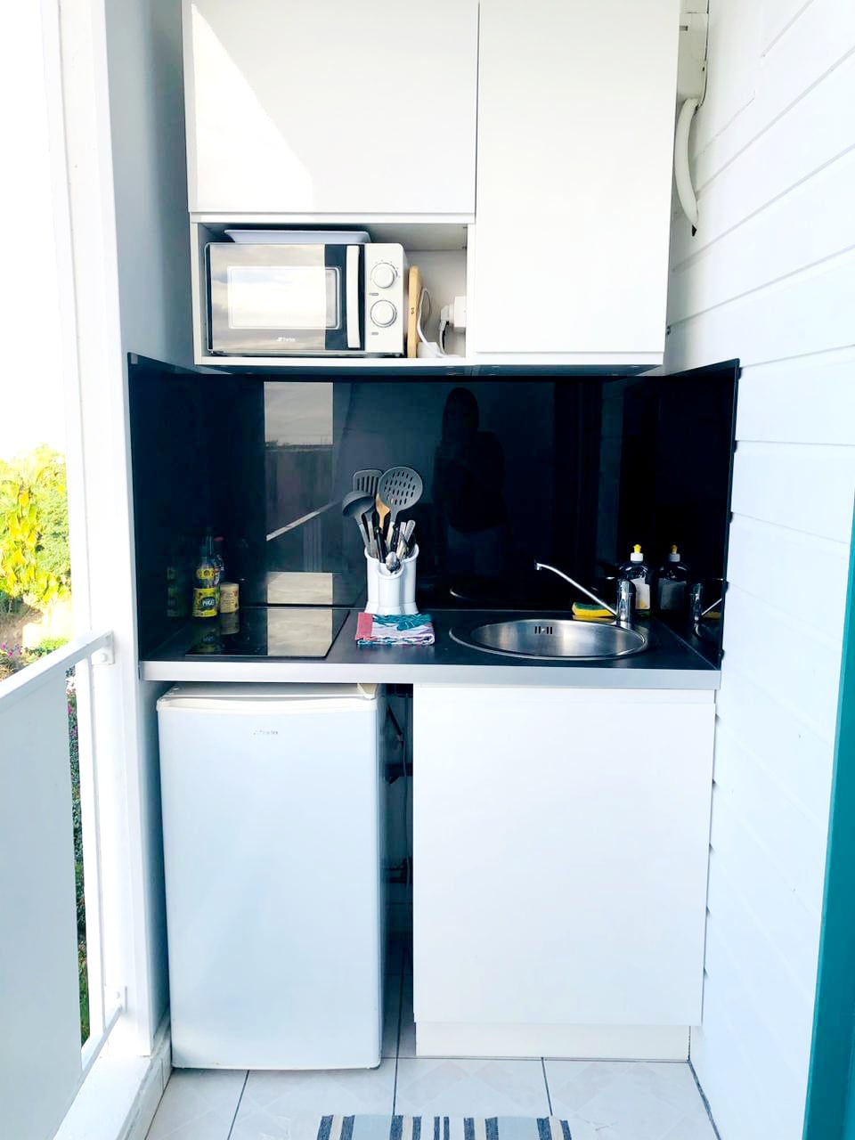 Enjoy this exceptional location, completely renovated, 300 meters from the beach and the boat shuttle. Small studio with two 90 cm beds, with bathroom, shower and toilet, new air conditioning, small desk, small balcony with equipped kitchen, and parking and swimming pool. Close to the center of Trois Ilets, with beaches, bars, and restaurants. Everything is possible on foot.