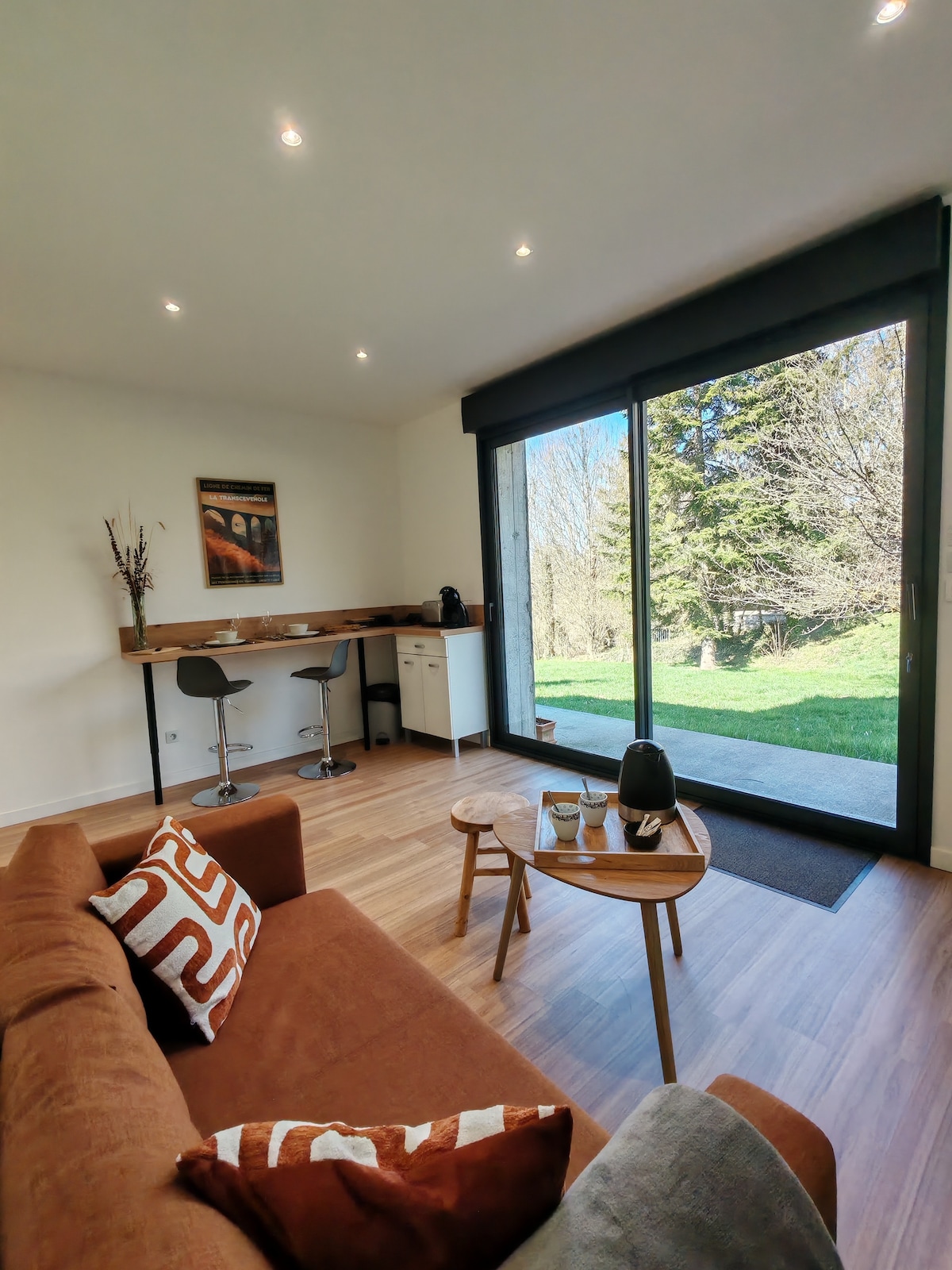 Bright, new (2023) independent studio, 40 m2, on the ground floor of our house, with direct access via an external staircase. Parking nearby. Close to the center of Le Monastier and its shops, and at the start of the Stevenson Trail. Private and communal bike garage adjoining free access for horses or donkeys. Located near Le Puy-en-Velay, departure from Saint Jacques de Compostelle, and the Les Estables resort (Nature activities, lugipark, skiing in winter).