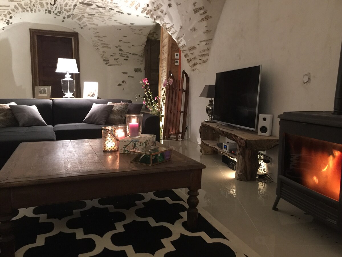 Beautiful 58 m² apartment fully renovated by an interior designer, comfortable, modern, warm, with a stove. Very quiet, bright, mountain views. Apartment in a 1830 village house. Easy walking access to all amenities: shops, bars, restaurants, ski resort, large baths, cinema, etc., ideal for a relaxing and/or sporty vacation.