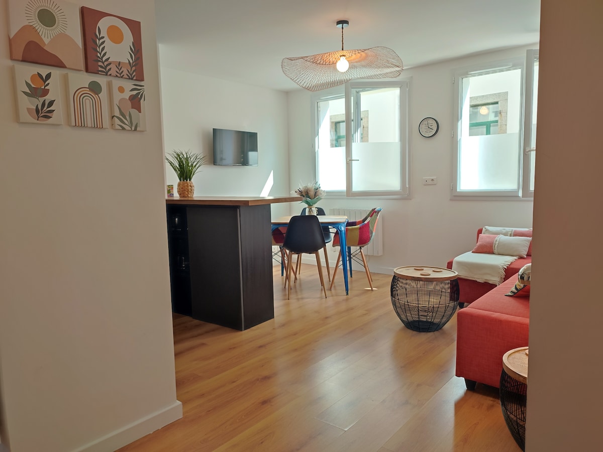 Located 50 m from the beach and in the heart of the seaside resort of Concarneau, Le Bigorn'O will be the starting point for beautiful walks by the sea. Its brightness, geographical location (shops, restaurants, theater 200 m away), west-facing exposure and comfort will contribute to you having a great vacation. This 2-room apartment was completely renovated at the end of 2022 with new materials and modern furnishings. The living space opens onto a pleasant 9 m² terrace.