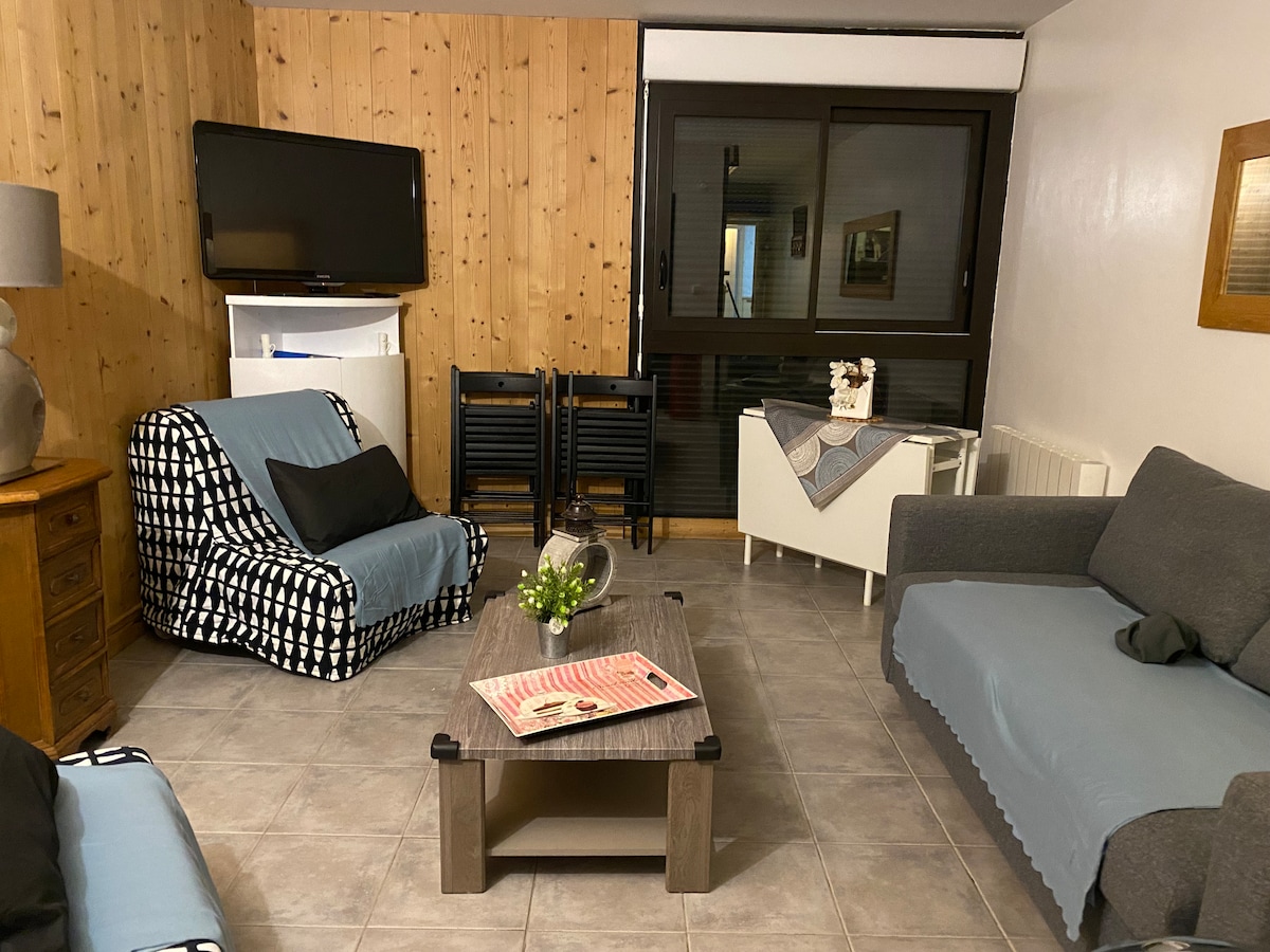 Large 27 m² studio, close to ski slopes, cable car and shops. On the 3rd floor with elevator, balcony, south facing. Bedroom area with 2 × 2 single bunk beds. Living room with sofa bed. Equipped kitchen. Bathroom and separate toilet. Amenities: pillows, duvets, wardrobe, TV, raclette app, filter coffee machine and a Nespresso. Parking, Ski locker, Rentals are from Saturday 2pm to Saturday 10am.