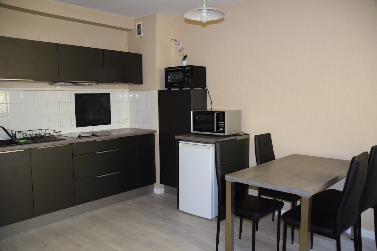 Rent studio on the 2nd floor with elevator in secure residence with intercom. Functional accommodation with fully equipped kitchen, Rapido sofa (real comfortable mattress). It is less than 5 minutes' walk from the city centre, SNCF and bus stations. Close to all shops. You can visit our city on foot.