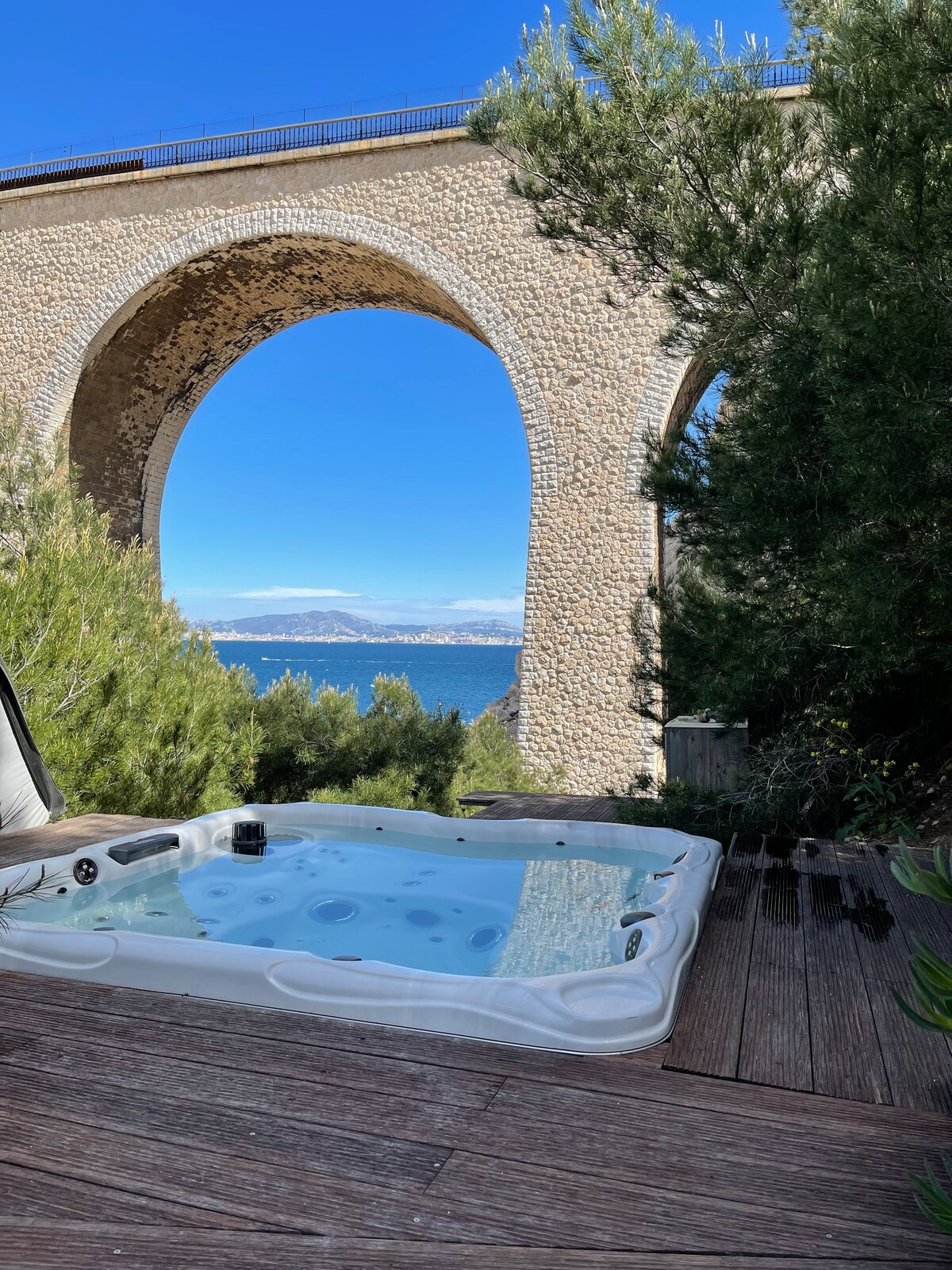 Jacuzzi with sea view, Maison Calanque Vesse, Côte Bleue