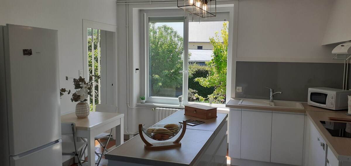 In a green & quiet setting of a magnificent 15th century castle located at the entrance of our beautiful medieval city of Dinan, you will stay in a 54 m2 loft apartment on the ground floor of the main building. You will discover its magnificent monumental fireplace and you will fall in love with this authentic building, steeped in history with all modern comforts in the heart of a beautiful 3-hectare park with its pond just a 15-minute walk from the historic center or 3 minutes by free bus.