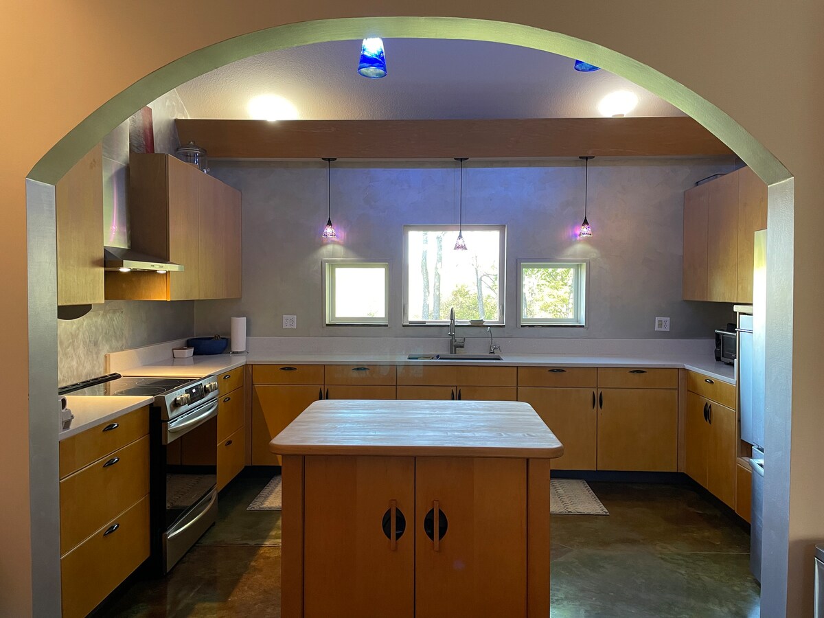 Escape to an adult/teen (12+ yrs) only peaceful getaway - Full Kitchen - Lg bdrm 1 step up sitting area, 3/4 bath - Living rm 1 step down - Guest favorite, screened-in back porch overlooks koi /goldfish pond - Hiking Trails 2+ miles/32+ wooded acres - Semi-private hot tub. (Shared amenity – sign up at arrival for private use times) - Complimentary coffee - Propane grill - Bring your own food, drinks - Excellent water Retreat has addl rentals for other guests.