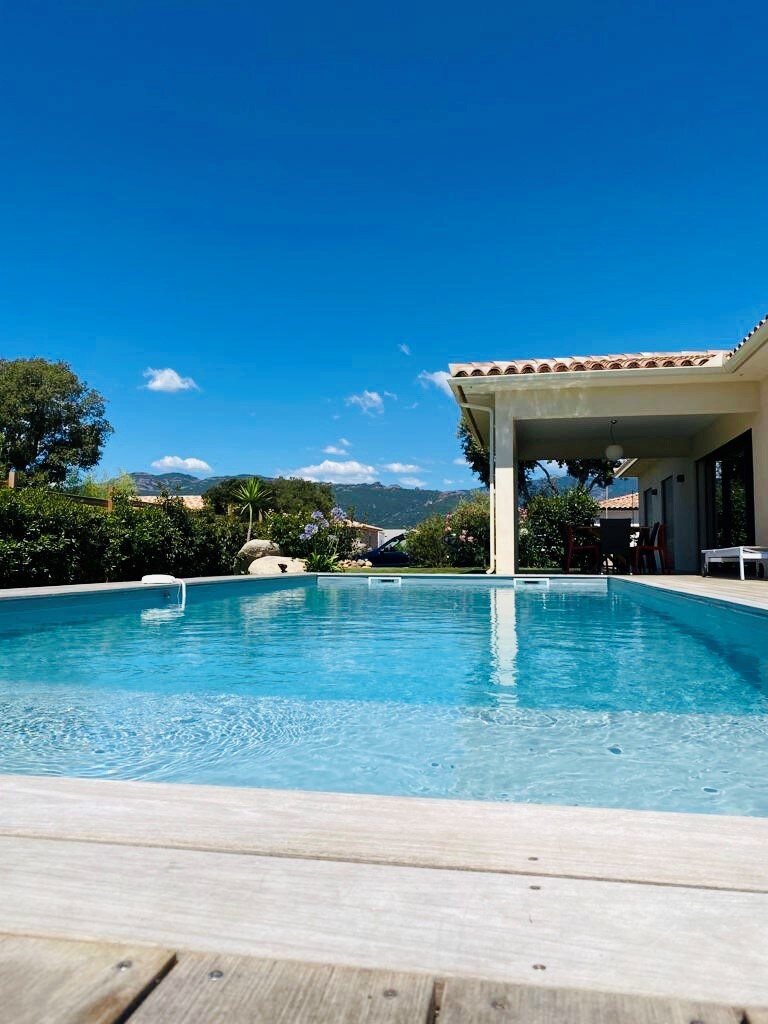 Petite villa de charme pour 5 personnes, 2 chambres, pièce de vie lumineuse, cuisine équipée. Piscine privée chauffée, terrasse avec pergola bioclimatique, barbecue Kamado. Jardin de 400 m2 aux essences corse, sans vis-à-vis. Lits faits à l’arrivée, linge et produits d'hygiène fournis. Commerces accessibles à pied. Calme et confort garantis pour un séjour paisible.