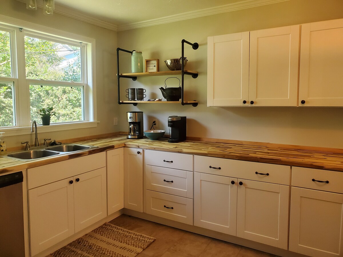 FRESH, CLEAN, & MODERN AIRBNB! This space has everything you need: Gorgeous kitchen, hardwood floors, amazing deck w/ large backyard, and beautifully designed bedrooms. Down the street from a cute park & minutes away from downtown, restaurants, & stores!