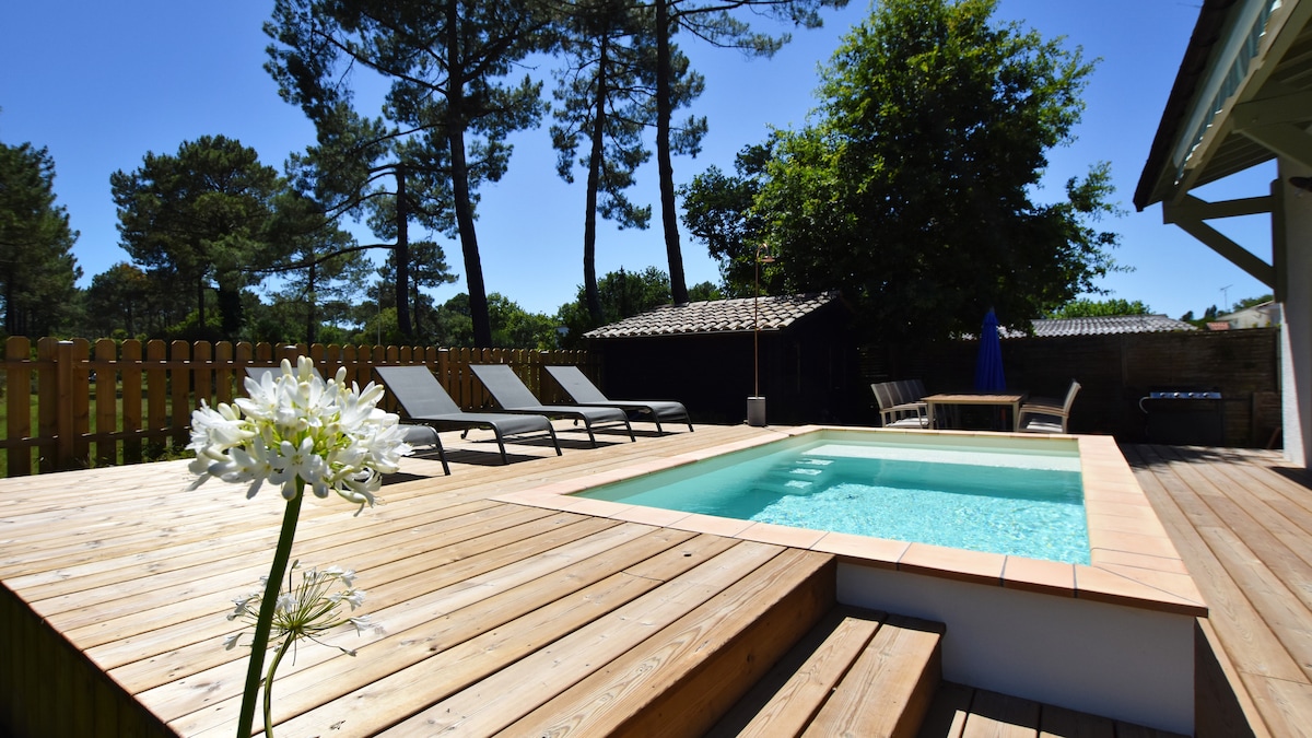 ❤️ Arcachon Bay ❤️ As a couple or with a baby, you can enjoy this... no, actually without children because with them, for cocooning, marshmallows on the brazier, and romantic meals it's more complicated 😊!! That said, we can help you out with everything from a travel cot, changing table, and even babysitting! Jacuzzi all summer! and only for promotional dates: jacuzzi with private access reserved just for you❤️! extra charge to be paid on site 😊