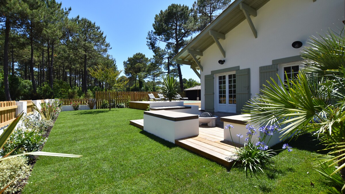 Relax with the whole family at this peaceful place to stay. Ideally located in a quiet environment and close to ocean beaches and the Arcachon Bay (5 minutes by car, 15 minutes by bike along forest bike paths) Fully equipped modern villa. 3 beautiful bedrooms 7 × 4 m heated pools secured by alarm and cover, outdoor bar, trampoline, bocce ball, garden furniture, charcoal barbecue and gas plancha. landscaped garden, enclosed and not overlooked. parking spaces.