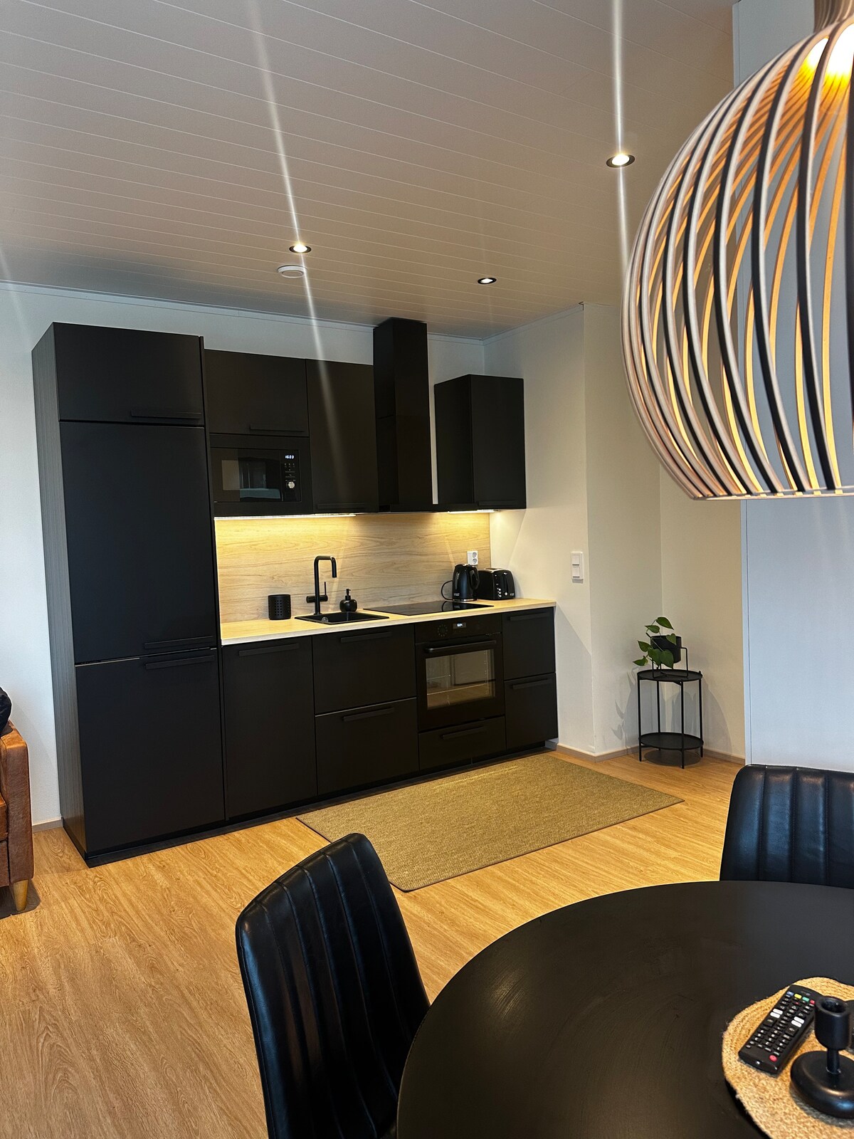 The apartment has a kitchenette, mh, toilet-shower-sauna. Cooking facilities (dishes in use), coffee maker, microwave, kettle, toaster, fridge-freezer. Coffee, tea, sugar and salt are available :) Bed linen included. In the bedroom, only a 160 cm wide bed. A sofa that can be spread out in the living room. For families with children, there is a high chair, a travel bed, a potty and a children's bathtub. Heating / cooling with air heat pump. Tablet TV WiFi/fixed fiber connection included.