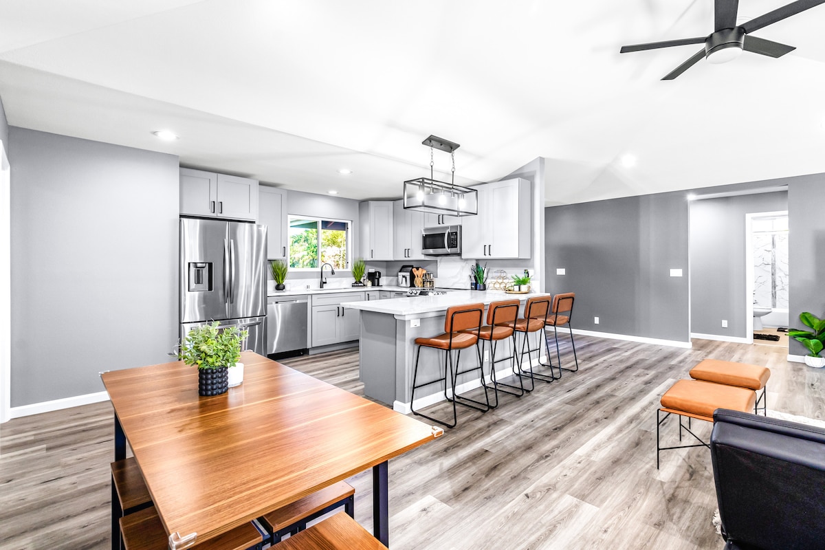 Relax with family and friends at this peaceful stay, located in the beautiful subdivision of Hawaiian Paradise Park. This newly renovated two bedroom, one bath home offers an affordable and relaxing stay with all of the comforts of home. This hale offers quick access to a secluded beach trail, the local hangout spot known as The Cliffs, and local farmers markets. Just a short drive to nearby Pāhoa, Keaʻau, or Hilo to explore all Puna has to offer.