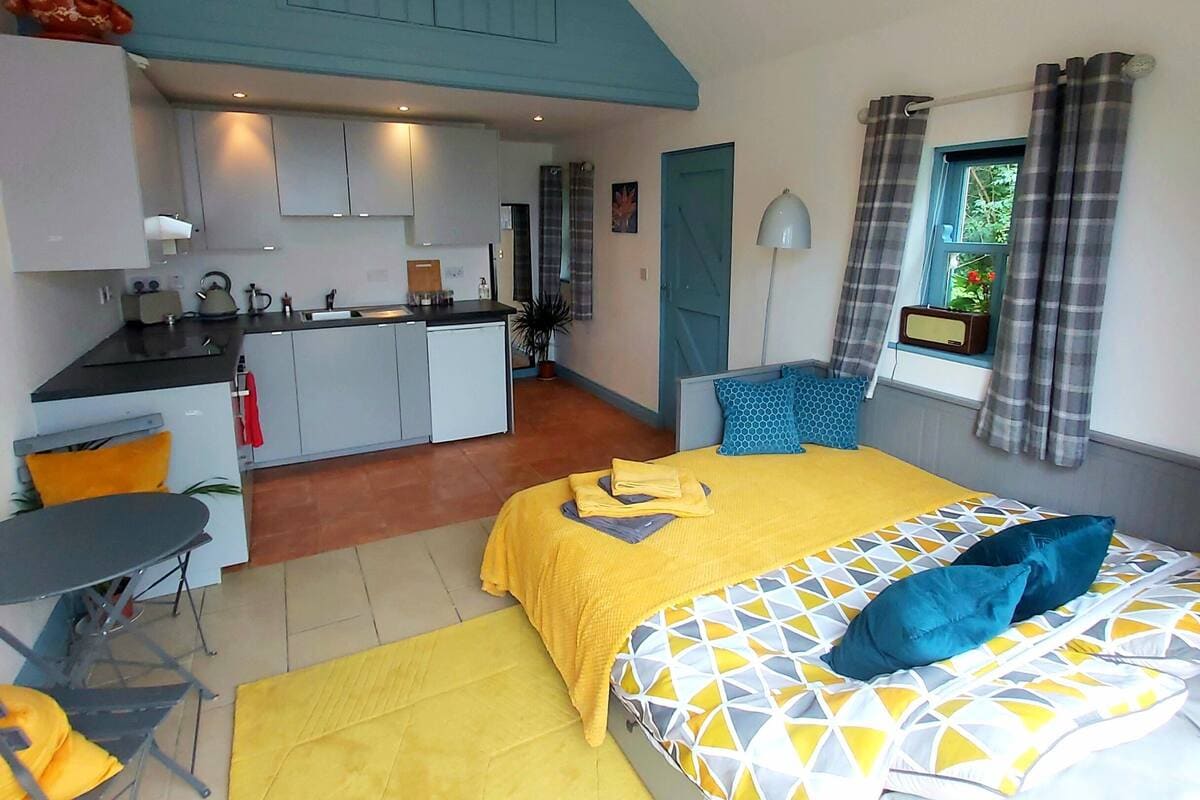 Your retreat A 1.5 km drive down a country lane you'll arrive at a secluded spot. Tranquilty, calm, and privacy are on offer, unless you want to converse with the birds. There will be no distractions or compromise so play that loud music if you wish, or bathe in the sound of the rustling trees. At night, the silence is deafening, the stars shine bright, the firepit outside is crackling and the woodburning hot-tub is ready for a dip or sweat out your tensions in the sauna Ramble explore indulge