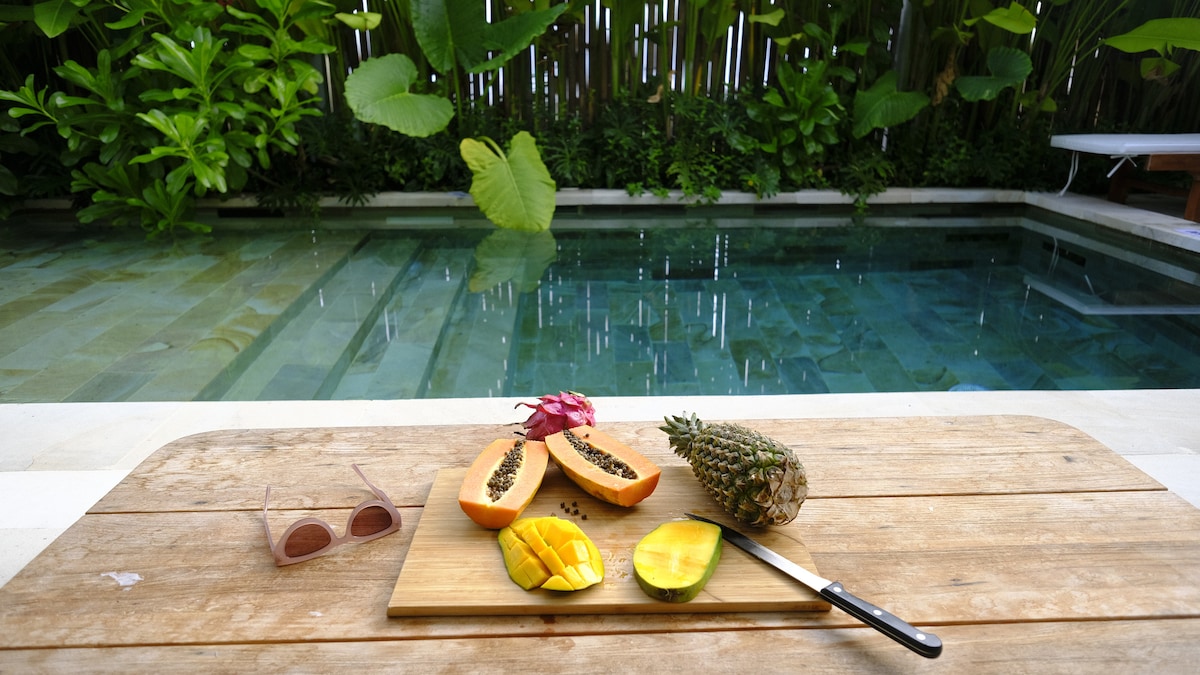 Take it easy at this unique and tranquil getaway. Katara Villa is set in a very quiet part of Jungutbatu yet is just a short walk to White Corner Beach, famous surf breaks and some of the best restaurants on the Island. This beautiful Japanese themed private villa has 2bedroom 2 baths and a large pool. The living space is an open design featuring a gourmet kitchen equipped to make any chef happy. Katara is beautifully decorated and has Smart TVs in all rooms.