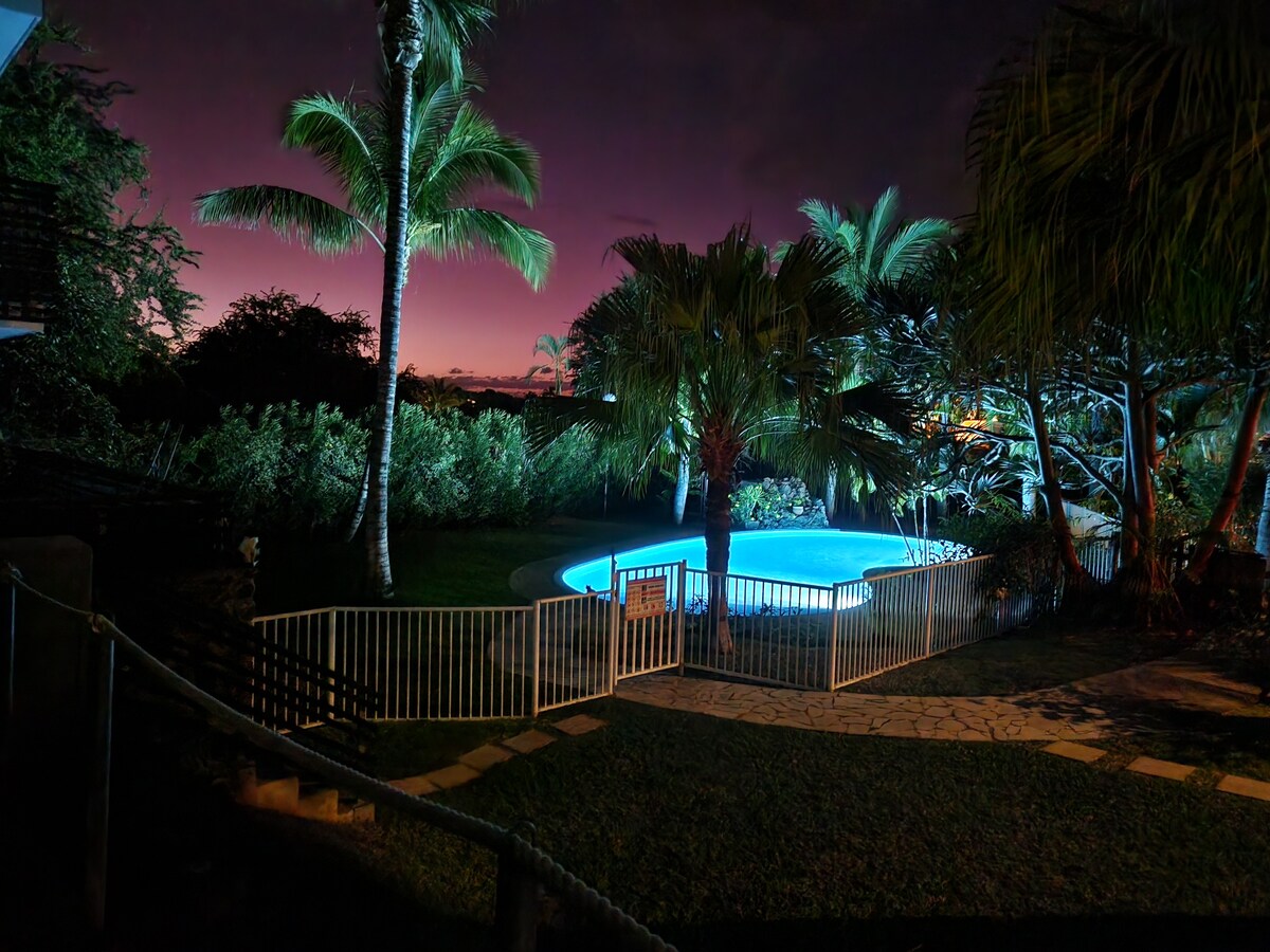 Paradis Lé La, your haven of peace in Étang-Salé! A quiet neighborhood with stunning views of the Indian Ocean, 4 wooden bungalows nestled in a tropical garden of 1,800 m² and 2 guest house studios. Shared relaxation areas: Saltwater pool at 28°C, free jacuzzi, barbecue areas, sunbathing, and darts: everything comes together for an unforgettable vacation under the Reunion sun. All our properties are designed for 2 adults only. Ideal place to recharge and explore the island.