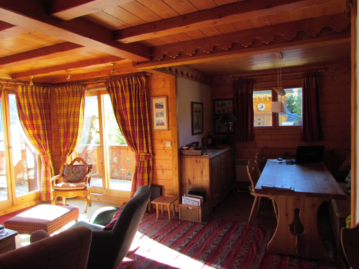Méribel family accommodation close to amenities. Access to slopes 7 min walk and shuttle 2 min, fully renovated. Small haven of peace perched on the 3rd floor without elevator access. Beautiful unobstructed mountain views. Peaceful residence. The apartment has a mezzanine with 2 beds not recommended for children under 8, the stairs are steep... There is also a small bedroom with a double bed of 160 with lots of storage. Well-equipped kitchen. Sitting area with fireplace and dining area