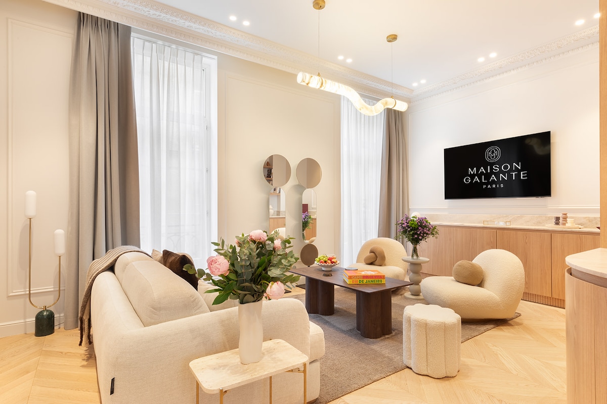Stay in an exceptional apartment in the heart of Paris's prestigious 8ᵉ arrondissement, on Boulevard Haussmann. Imagined and decorated by the architects of The Lander, this elegant 100 sqm apartment embodies Parisian refinement and offers an authentic experience for 6 people. On the 5ᵉ floor with elevator, it guarantees a peaceful, bright atmosphere. We offer a daily cleaning service to ensure a refined atmosphere throughout your stay. Each room is air-conditioned.