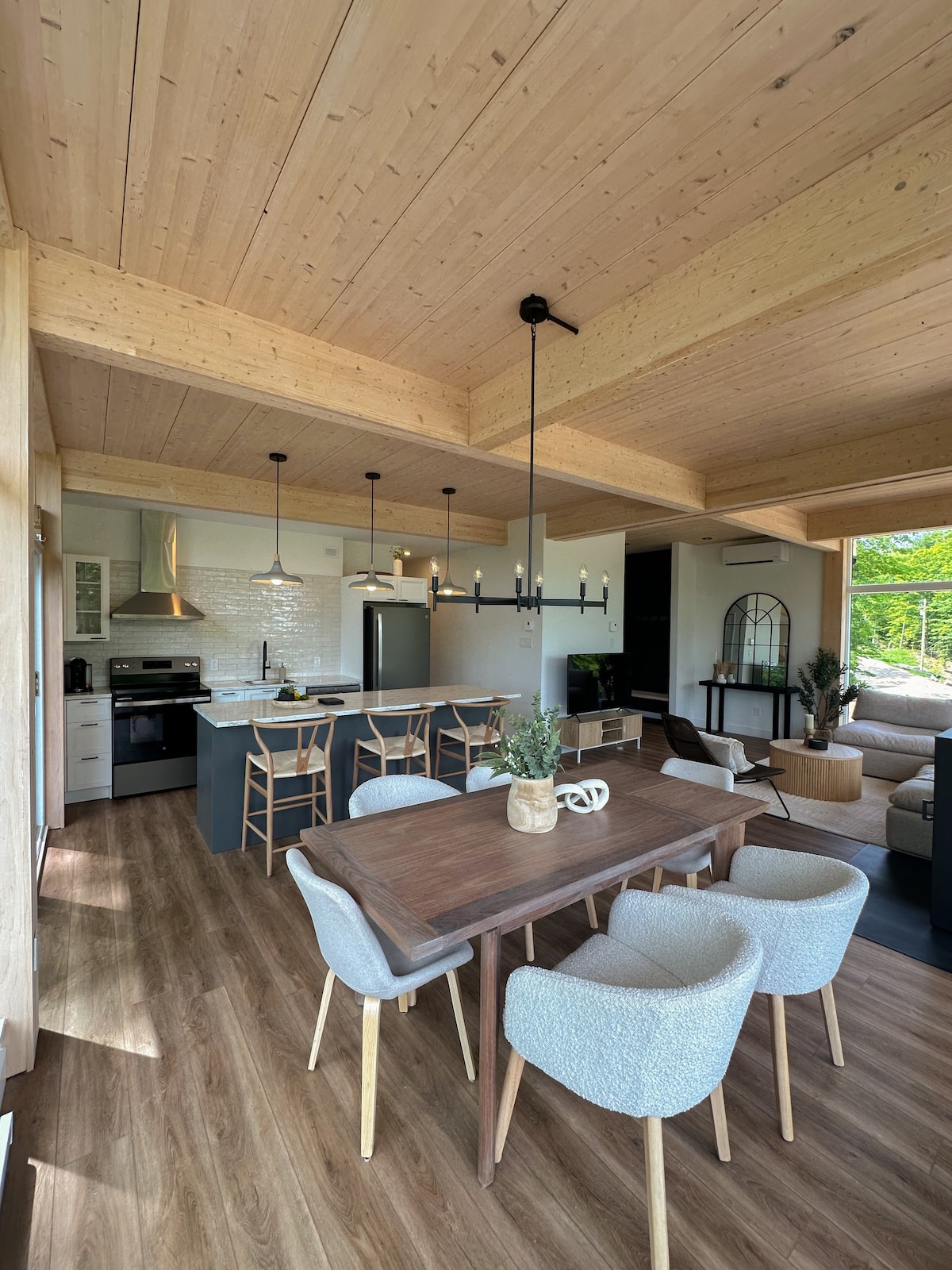 Take advantage of the soothing effect of nature by staying in this contemporary chalet with lots of windows in the heart of the forest. Tremblant is beautiful no matter the season. Dream outdoor destination, you will be 8 minutes from Mont-Blanc and 20 minutes from Mont Tremblant. Whether for hiking, cross-country skiing, snowshoeing or snowmobiling, trails are easily accessible in all directions. Without forgetting the famous P'tit Train du Nord 3 minutes away.