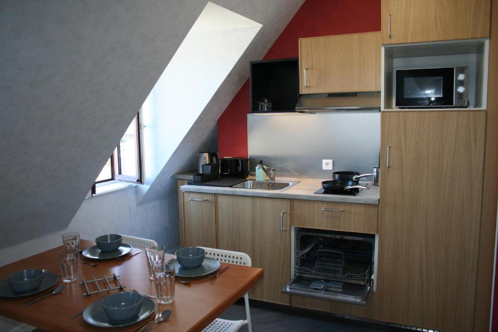 Notre ancien fournil est une partie de notre corps de ferme. Au rez - de - chaussée, il est pourvu d'une cuisine équipée et d'une salle de douche avec toilettes. A l'étage, une chambre mansardée dispose de 3 lits indépendants. A l'extérieur, nos hôtes ont accès à une terrasse privée avec du mobilier de jardin. La wifi est gratuite. Un petit déjeuner (pain paysan, confiture) est proposé sur demande pour 5 euros par personne. Proche de la voie verte, les promeneurs apprécieront cette halte.