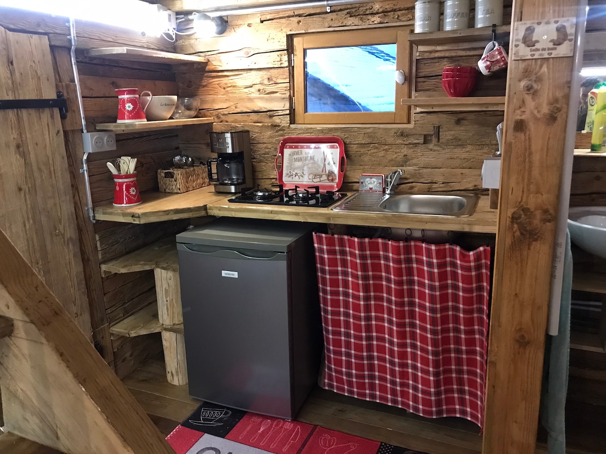 Cozy studio in 19 m2 chalet Independent entrance and terrace Furnished with all comforts with equipped kitchen (oven, dishwasher, microwave, coffee maker, kettle), bathroom (with shower, sink and toilet), sofa bed with comfortable mattress, storage cabinet, TV, Wi-Fi, terrace. Located in a cul-de-sac, quiet area, 300 m from the center of the village. Close to the bakery, pharmacy, tourist office, bi1 store, cross-country ski slopes, ski bus.