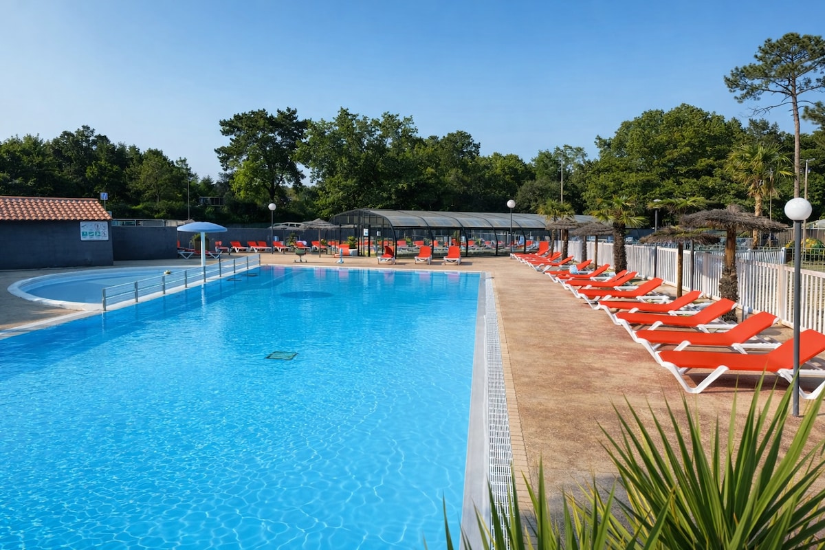 🌿 Enjoy a stay with family or friends in our cosy, air-conditioned mobile home for 6 people, complete with terrace and barbecue, less than 10 minutes from the beaches of Saint-Hilaire-de-Riez. ⭐ Located on a 4-star family campsite, you can enjoy a wide range of facilities: swimming pools, children's play area, seasonal activities, bar-restaurant and a grocery shop. 🛏️ Beds made for your arrival for a stress-free stay, in a peaceful setting between the ocean, the forest and the marshes.