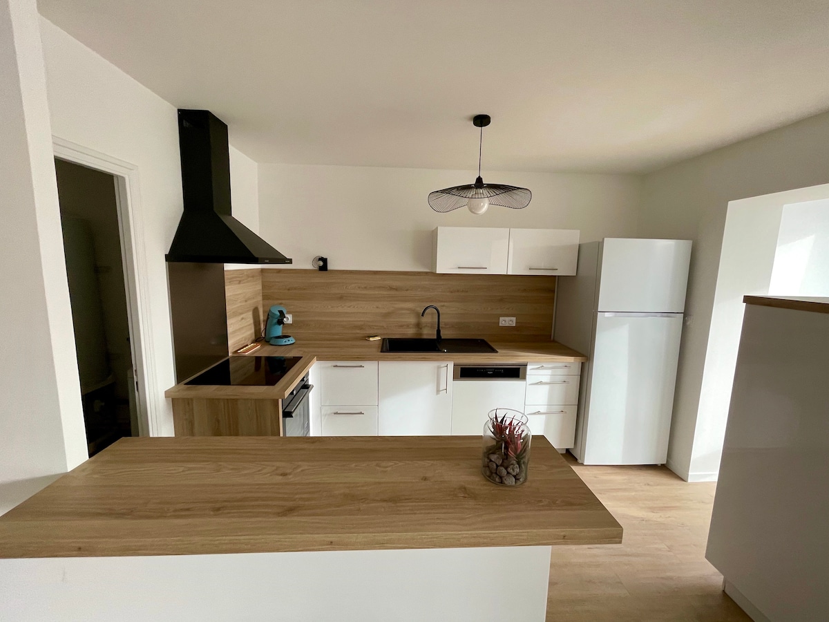 Vacationer or employee on the move, discover a 35 m2 furnished cottage, located in the town center, close to all amenities, designed to accommodate 1 to 4 guests. Relax in your sunny patio, a perfect place to unwind after your day, while having a good connection for hard workers. Enjoy your evening and sleep comfortably. This corner, located in an outbuilding of our garden, has been designed to make you feel at home.