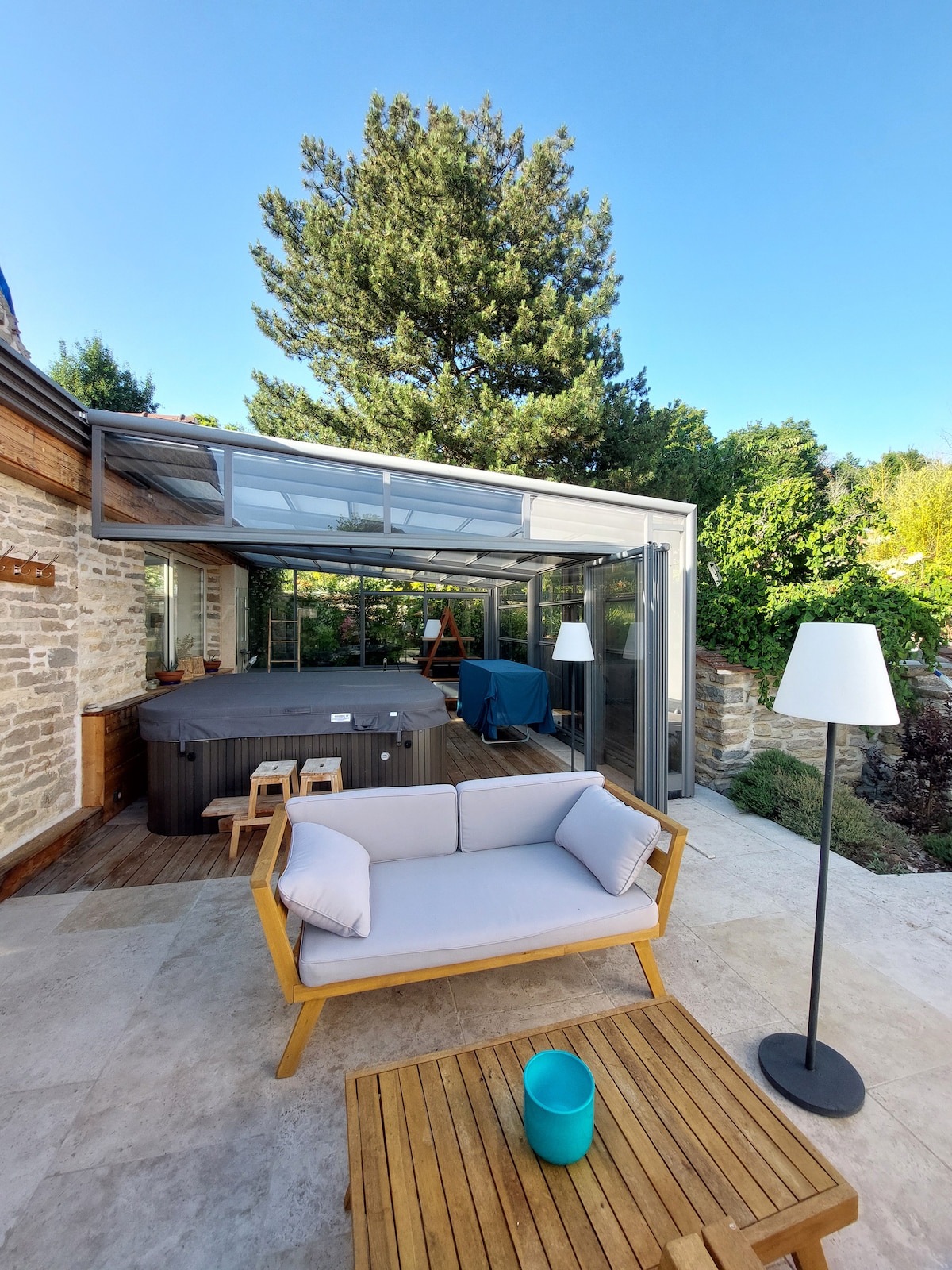 The La Charme gîte is located in Sacquenay in the heart of the Bourgogne Franche Comté region. I wanted it to be warm and comfortable so that my guests could spend relaxing and rejuvenating moments there. To create a true wellness experience, a spa is available on the terrace as well as a home cinema in the living room. I also offer breakfast as well as appetizer boards and a selection of local drinks and wines.