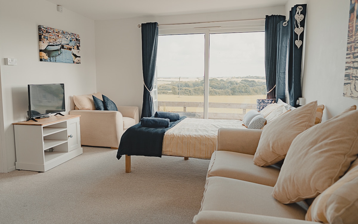 The Studio is a beautifully furnished, light and airy space in the grounds of our home. With far reaching stunning views of the countryside. It is approximately 2 miles from St Austell and convenient for beaches, Eden project, Heligan Gardens, Charlestown and lovely country walks. Due to Covid 19 I have put in an extra precautionary cleaning regime for your safety including the use of UV Disinfectant lamp which will be used between each guests visit.