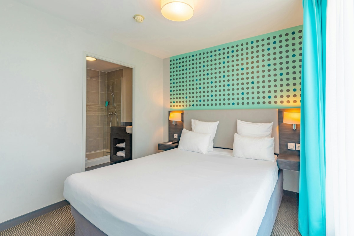 Solo traveller or couple. . . The Eklo Compact room is an intimate cocoon, perfect for a good night's sleep. 10m2 with all the essentials: double bed, quality French Merinos bedding, private bathroom with organic gel/shampoo, bathroom linen and air conditioning.