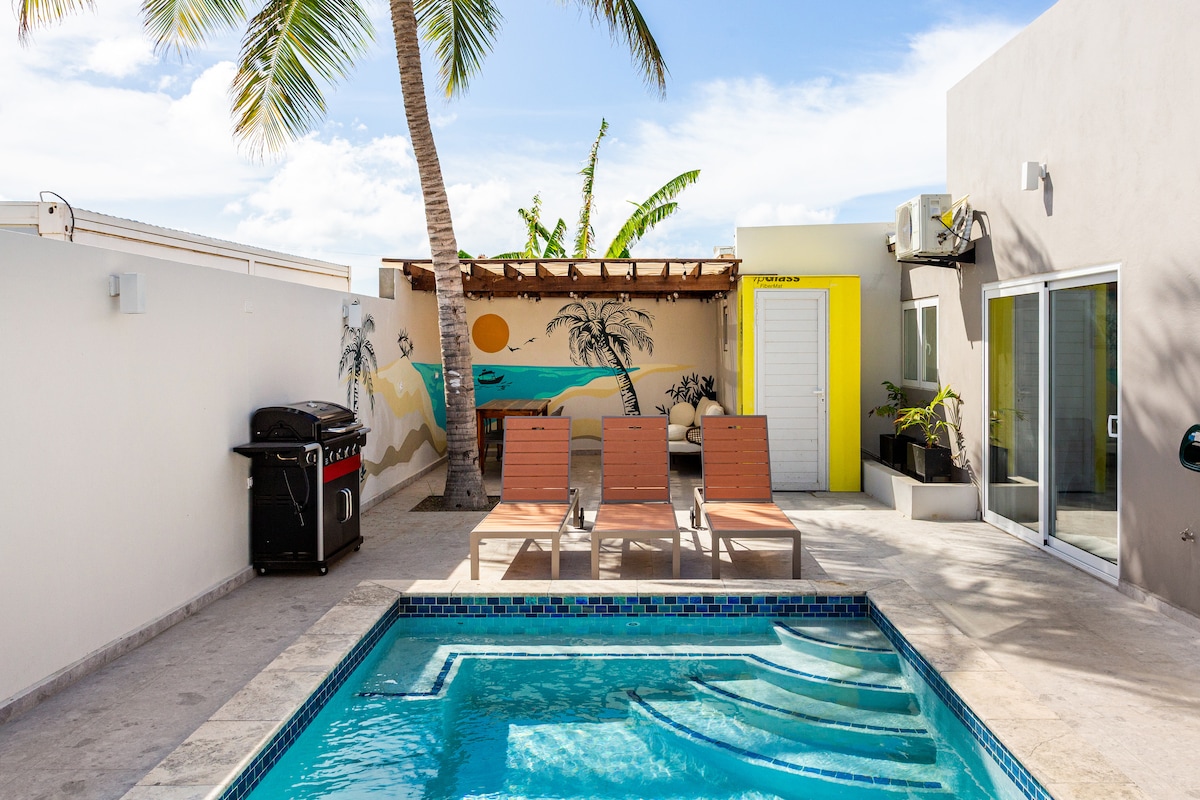 Escape to paradise in our private 2BR/2BA villa with plunge pool! ★ 5-min drive to Eagle Beach, dining & activities ★ Private pool, patio & BBQ – perfect for relaxing ★ Fully equipped kitchen, A/C & High-Speed Wi-Fi ★ Smart TV with Netflix & premium cable ★ Beach gear, washer/dryer & free parking included ★ Near scenic hiking & biking trails "Feels just like home with everything you could ever need!" – Madeleine ★★★★★ Ideal for couples, families & friends. Car rental recommended. Book NOW!