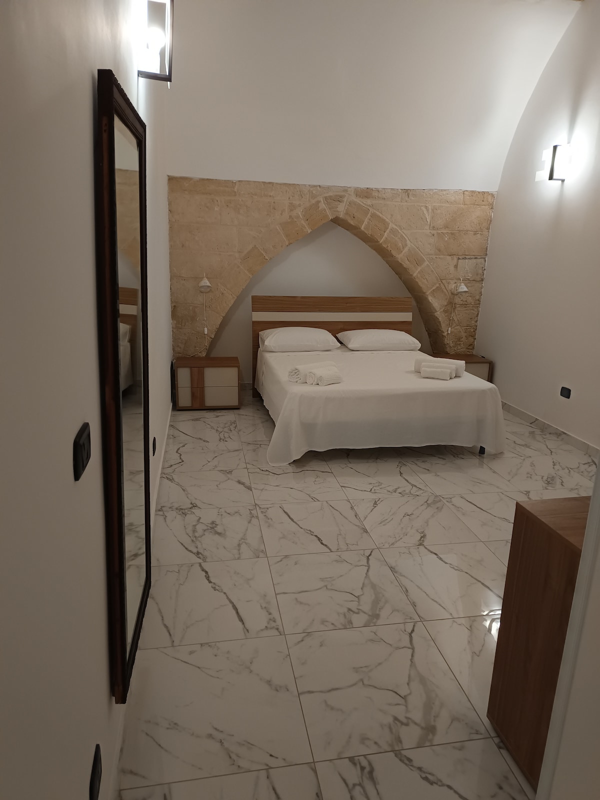 Once part of a noble palace, Casa di Giò harmonises original splendour with a light & airy touch. Traces of the terrace arches (now the bedroom), vaulted ceilings, and authentic floor tiling. A 17th century palazzo, we’re the first to utilise the rooftop terrace, bestowing panoramic views of Parabita's historical centre. A stone's throw from the town square, it's easy to immerse yourself in the best of Salento here.