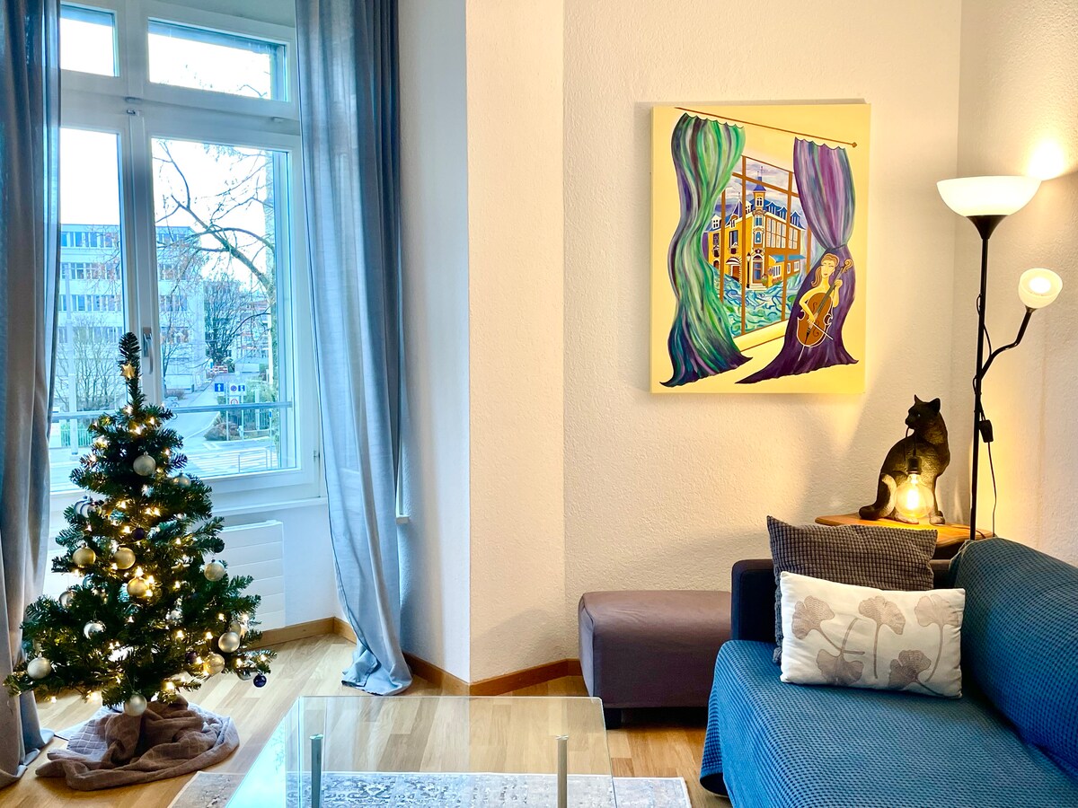 Entdecke unsere stilvolle Wohnung, ideal für bis zu 4 Gäste. Nur 4 Gehminuten von den Öffentlichen Verkehrsmitteln sowie von diversen Einkaufsmöglichkeiten entfernt. Das Zentrum ist mit dem ÖV rasch erreichbar oder mit einem gemütlichen Spaziergang - perfekt für Stadterkundungen. Die malerische Aare ist in wenigen Gehminuten erreicht wie auch Restaurants und Gelaterias. Unser Balkon und das Homeoffice bieten dabei die ideale Mischung aus urbanem Flair und Komfort für deinen Aufenthalt in Bern.